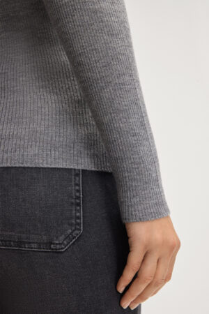 Pelēks vilnas džemperis ar atlokāmu apkakli