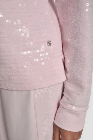 Rozā džemperis ar fliteru pārklājumu priekšpusē