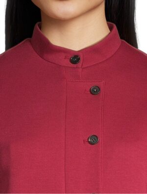 Tumši sarkana jaka ar dekoratīvām aprocēm