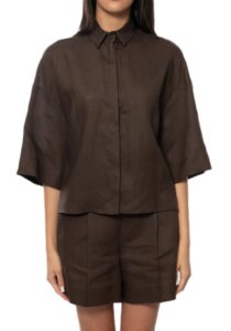 Itāļu modes zīmola MM by Max Mara tumši sarkana skulpturāla dizaina sieviešu jaka ar paaugstinātu apkakli un pogu aizdari. Izgatavota no bieza un blīva kokvilnas maisījuma materiāla. Papildināta ar dekoratīvu krokojumu un rāvējslēdzēju aizdari aprocēs.