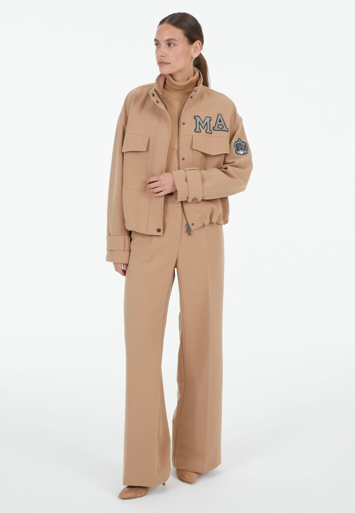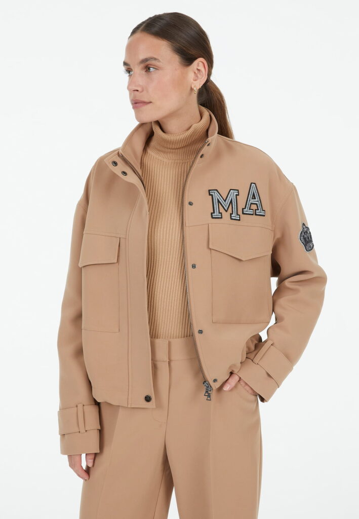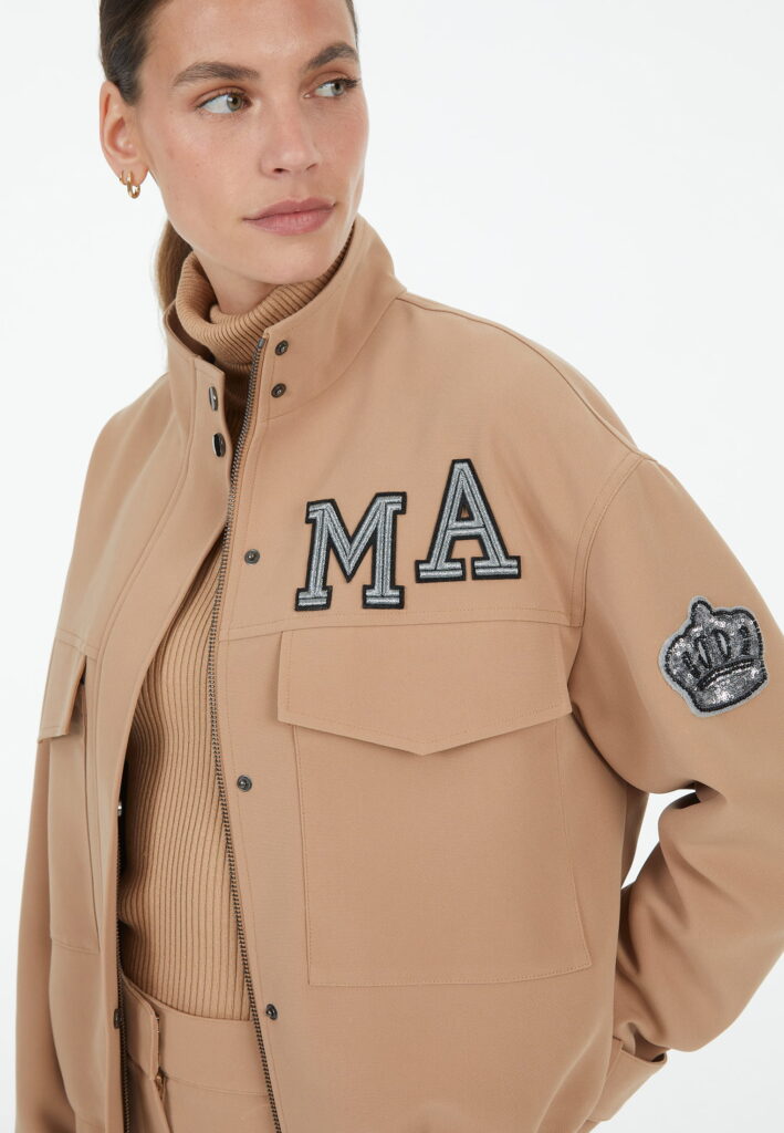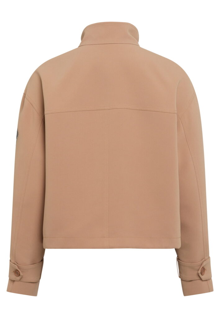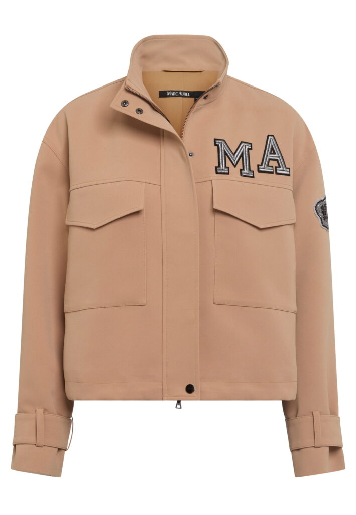 Vācu modes zīmola Marc Aurel smilšu brūna sieviešu virsjaka ar slēptu divvirziena rāvējslēdzēja un spiedpogu aizdari. Izgatavota no viegli kopjama auduma ar plānu oderi. Papildināta ar paaugstinātu apkakli un pogājamām aproču lencēm, kā arī uzšūtām lielizmēra kabatām. Akcentēta ar sudrabainu zīmola burtu aplikāciju un mirdzošu emblēmu uz piedurknes.