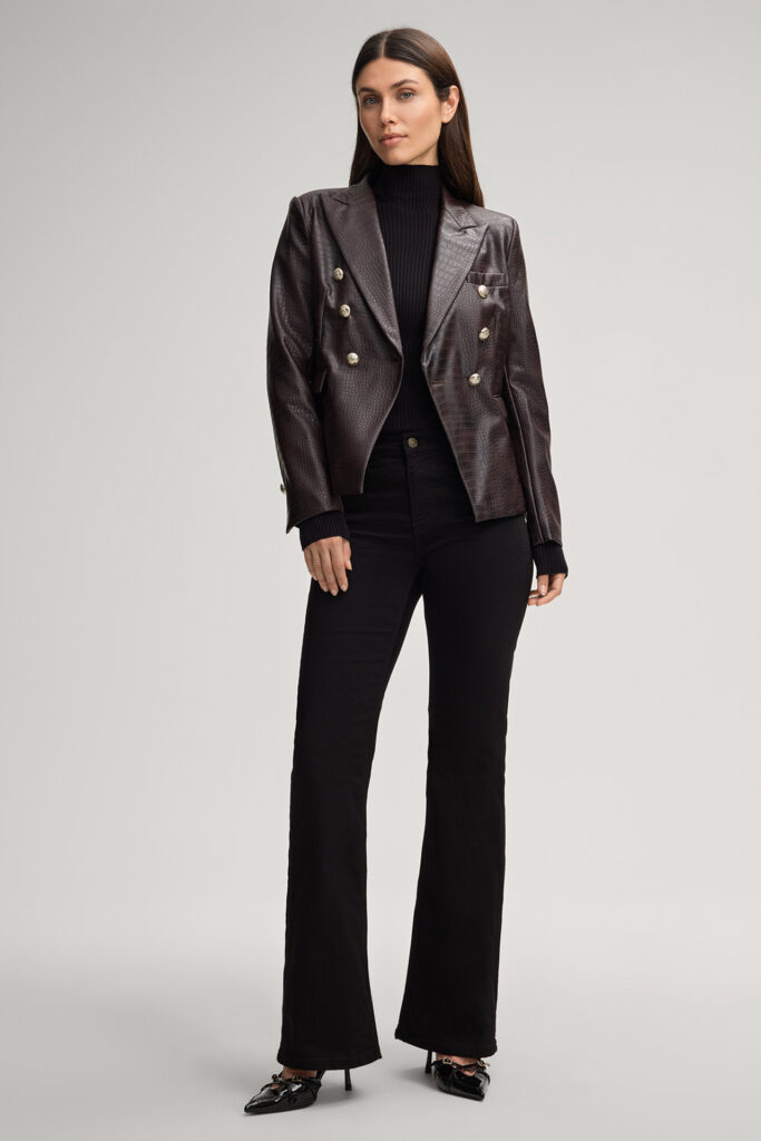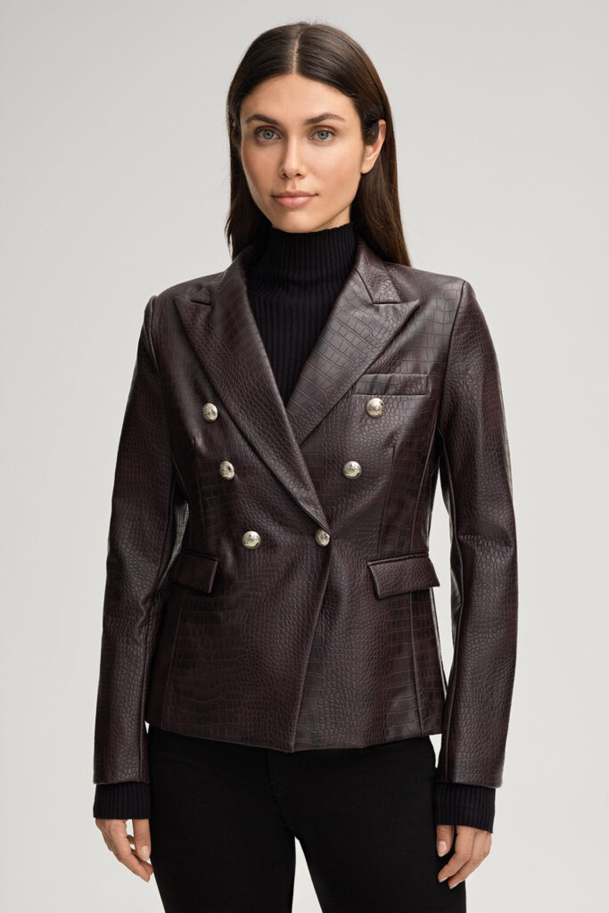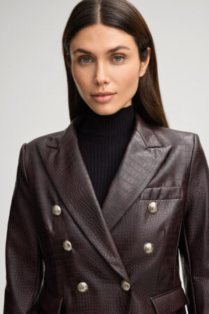 Ādas imitācijas žakete ar divrindu pogu aizdari