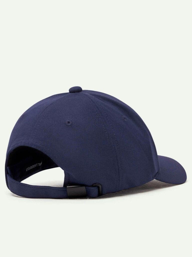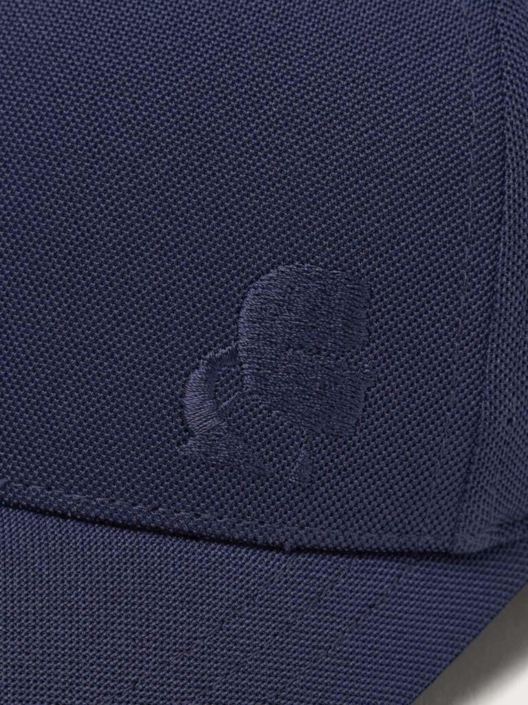 Vācu luksusa zīmola Karl Lagerfeld vīriešu beisbola cepure tumši zilā krāsā ar vientoņa KARL Kameo izšuvumu sānā. Izgatavota no viegli elastīga un blīva poliestera materiāla ar austu tekstūru. Papildināta ar regulējamu aizdari mugurpusē.