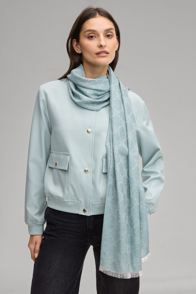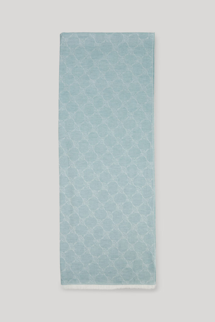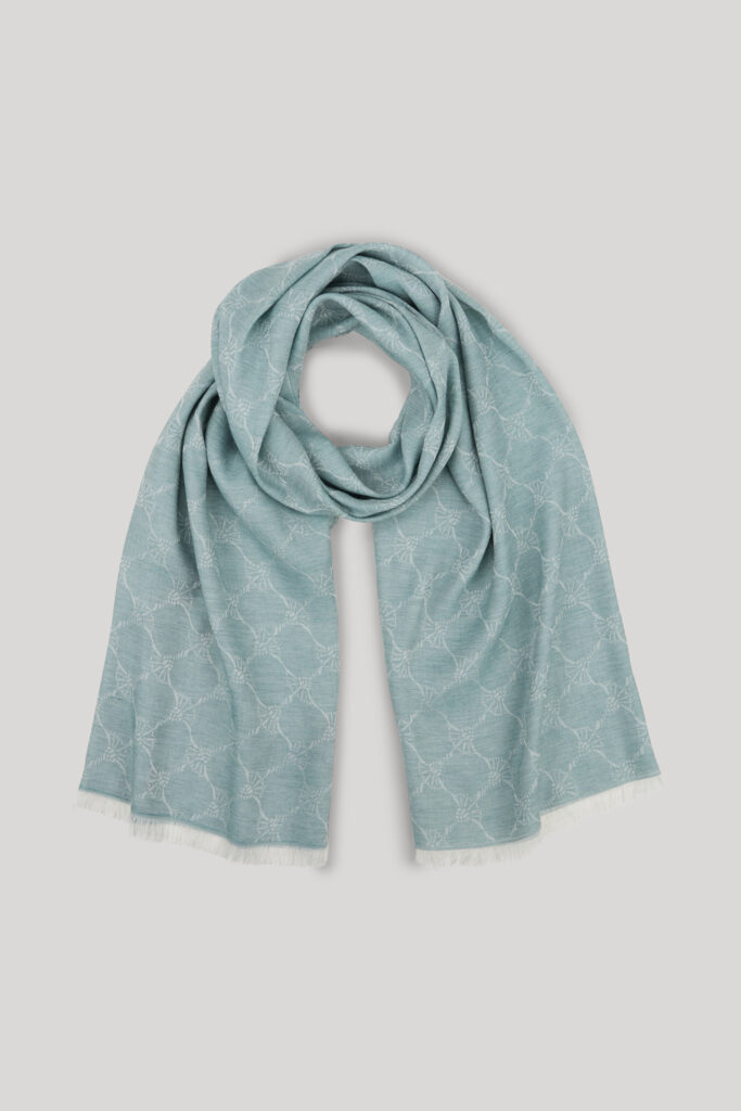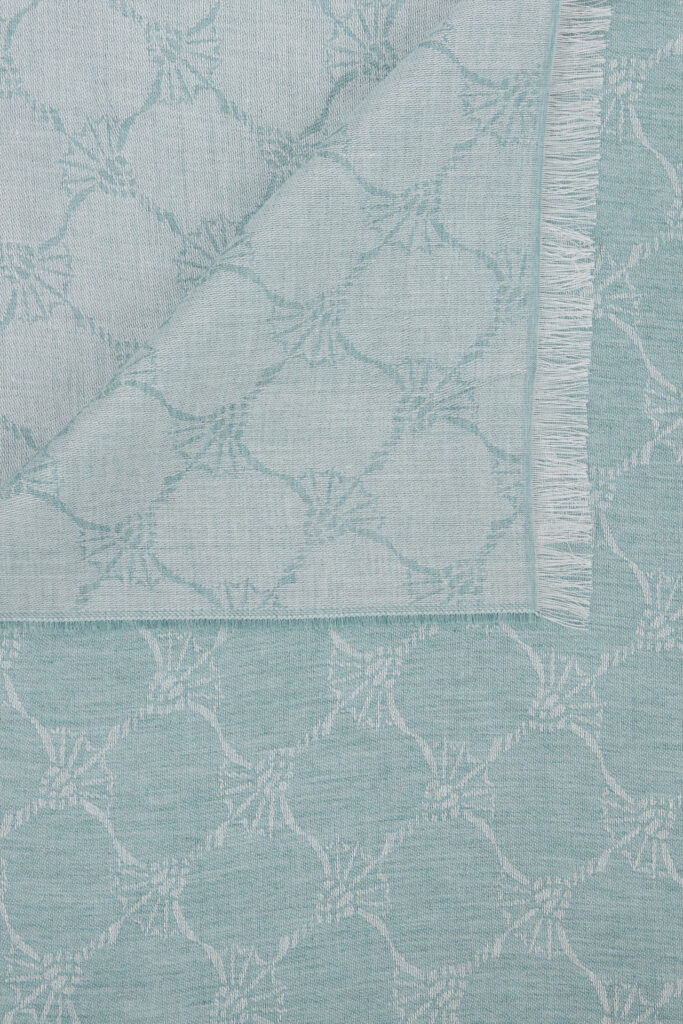 Vācu modes zīmola Joop! universāla unisex dizaina šalle ar grafisku rudzupuķu žakarda rakstu gaiši tirkīza zaļā tonī. Izgatavota no viegla viskozes un modāla materiāla. Papildināta ar smalku bārkstiņu apdari nobeigumā.