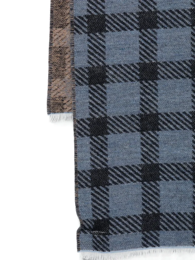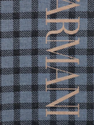 Pelēkzila šalle ar rūtainu motīvu un lielizmēra logo