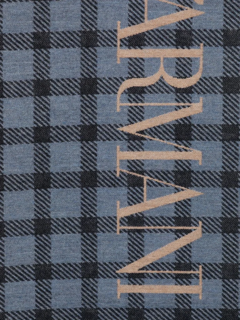 Itāļu luksusa zīmola Emporio Armani bieza vīriešu šalle ar rūtotu rakstu pelēcīgi zilā krāsā. Izgatavota no silta un mīksta materiāla. Papildināta ar kontrastējošu zīmola logotipa akcentu un smalku bārkstiņu apdari nobeigumā.