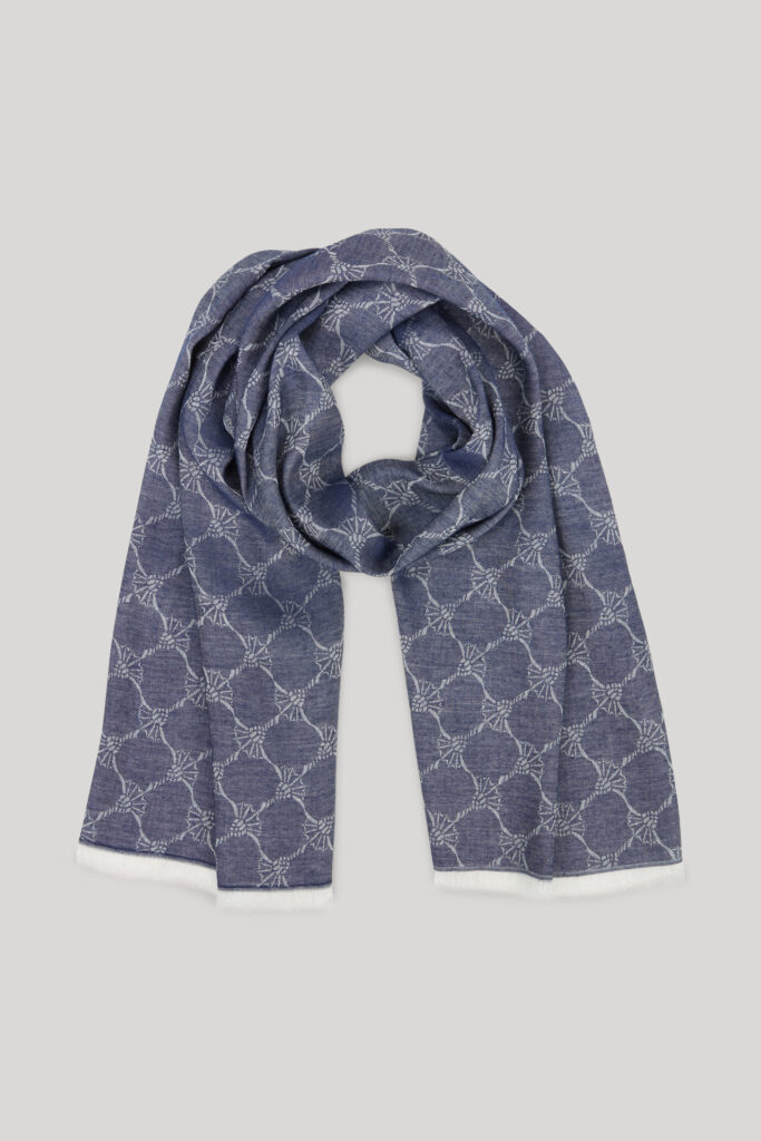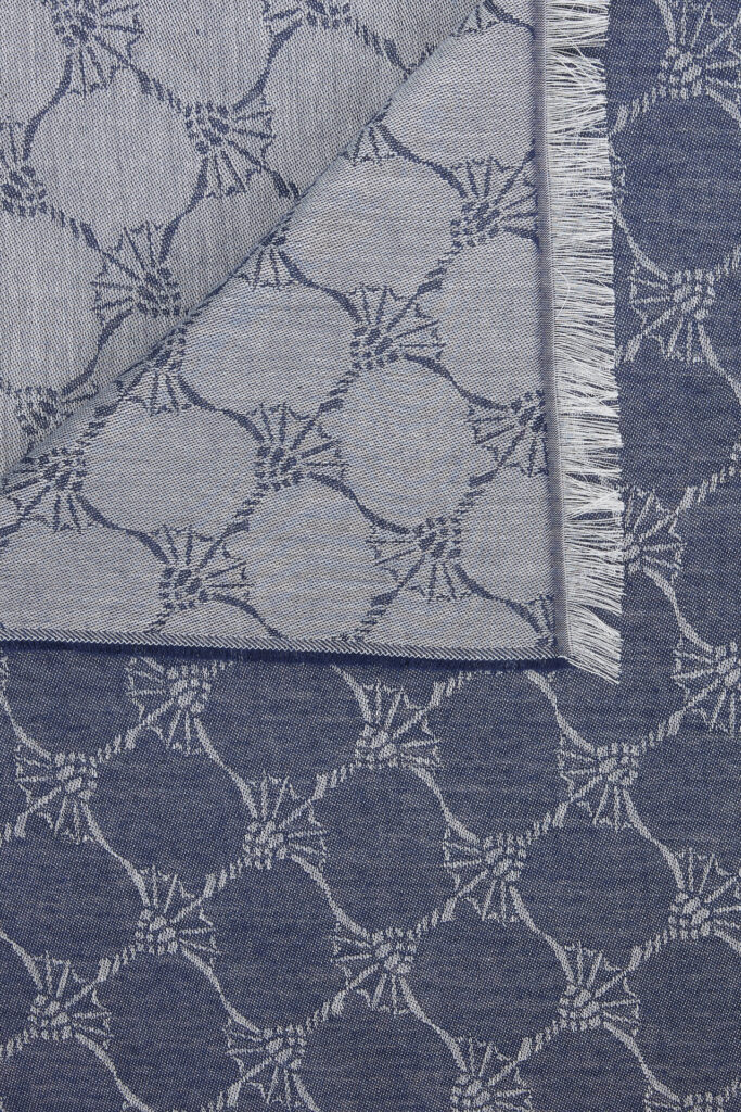 Vācu modes zīmola Joop! universāla unisex dizaina šalle ar grafisku rudzupuķu žakarda rakstu tumši pelēcīgi zilā tonī. Izgatavota no viegla viskozes un modāla materiāla. Papildināta ar smalku bārkstiņu apdari nobeigumā.