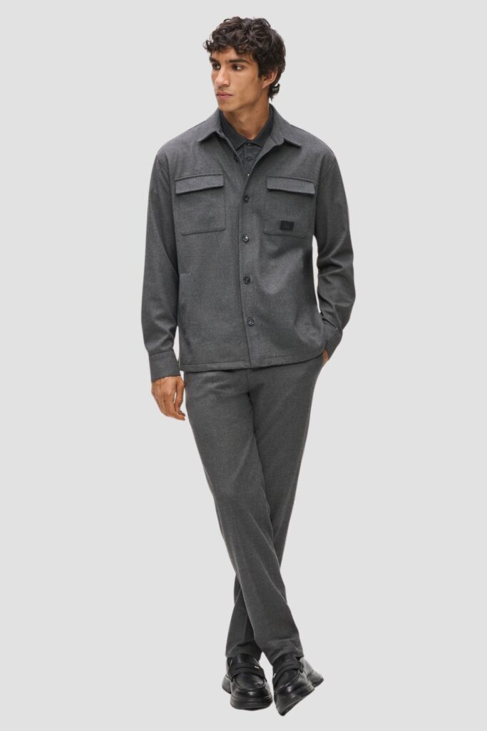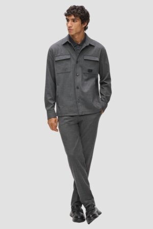 Vācu luksusa zīmola Karl Lagerfeld universālas vīriešu chino stila bikses pelēkā krāsā. Izgatavotas no viegli kopjama viskozes maisījuma materiāla ar vilnas struktūru. Papildinātas ar elastīgu sasienamo jostu un iešūtām kabatām.