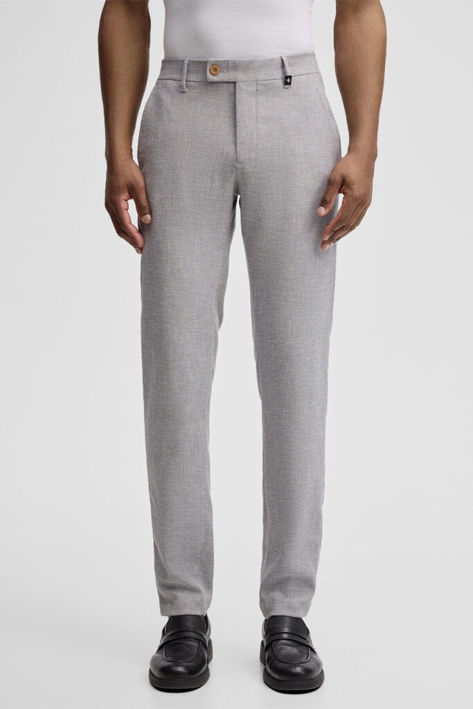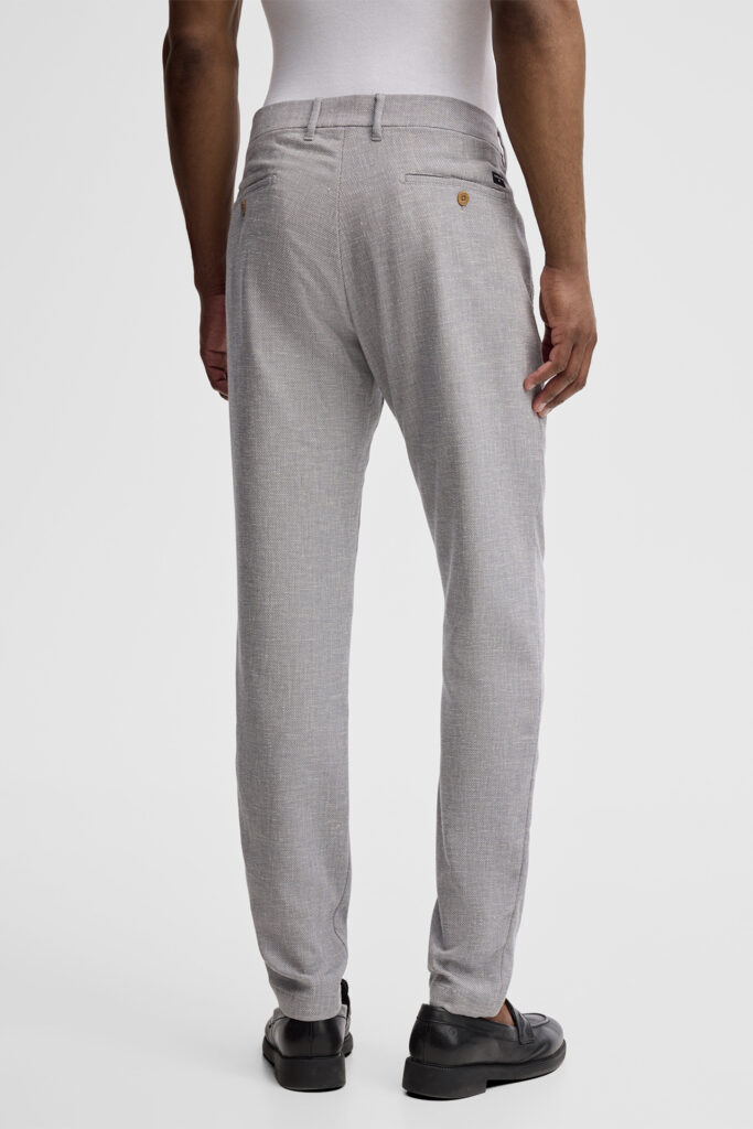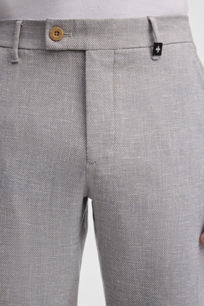Gaiši zilpelēkas chino bikses ar linu struktūru