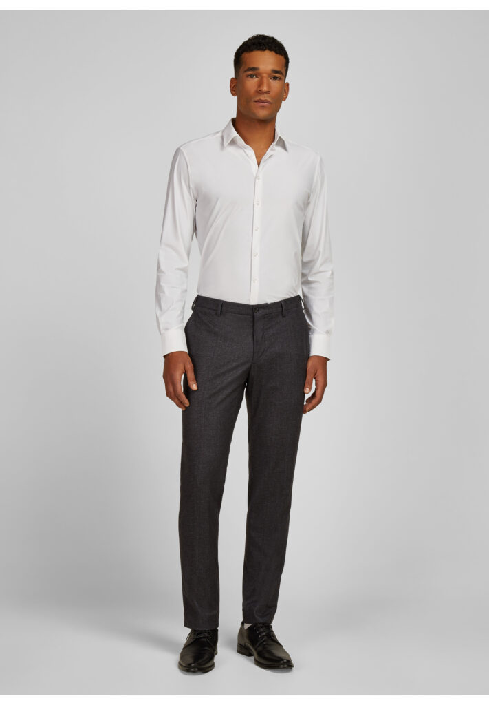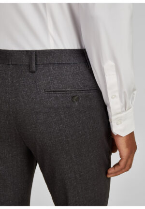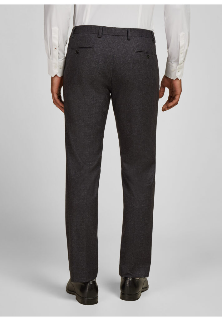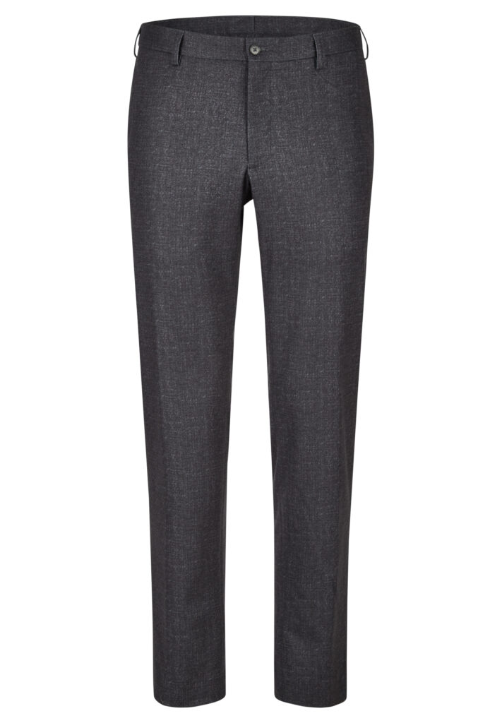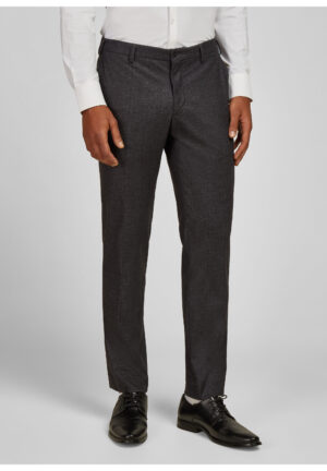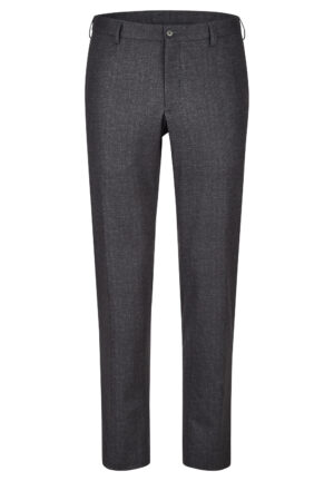Franču zīmola HECHTER PARIS universālas moderna piegriezuma vīriešu bikses ar sānos elastīgu jostasvietu. Izgatavotas no mīksta un elastīga materiāla ar viegli raibu rakstu tumši pelēkā krāsā.