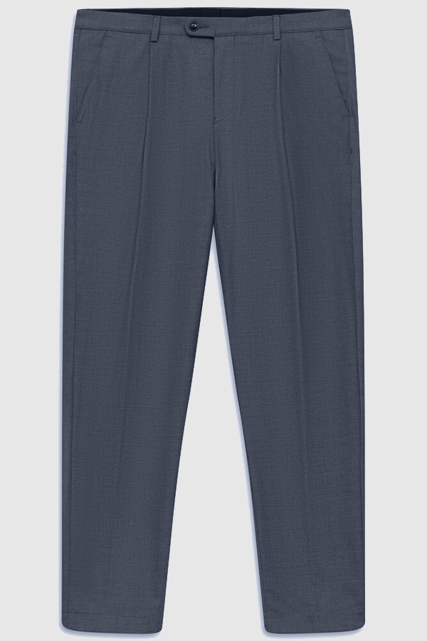 Tumši pelēkzilas vīriešu bikses ar ielocēm