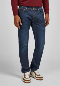 Vācu modes zīmola Joop! Jeans elastīgi moderna piegriezuma vīriešu džinsi nakts zilā krāsā ar neliela nodiluma efektu un zīmola logotipa detaļām.