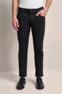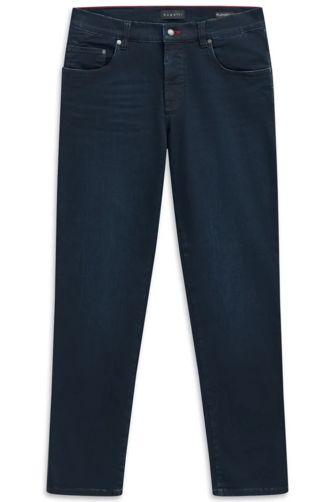 Vācu modes zīmola Bugatti universāli un komfortabli moderna piegriezuma vīriešu džinsi tumši zilā krāsā ar viegla nodiluma efektu. Izgatavoti no elastīga kokvilnas materiāla. Papildināti ar smalkiem, košiem akcentiem un zīmola logotipa detaļām.