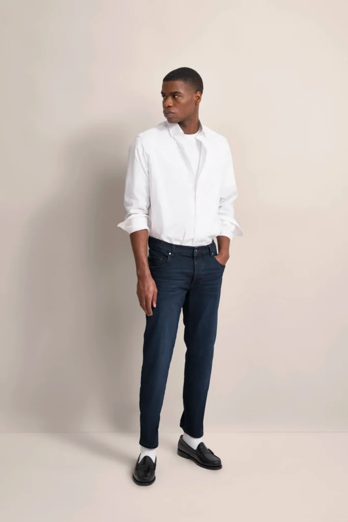 Elastīgi kokvilnas džinsi ar tumši zilā tonī