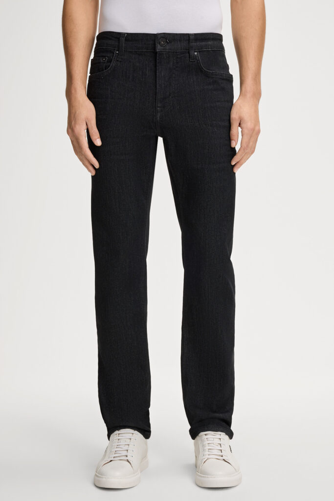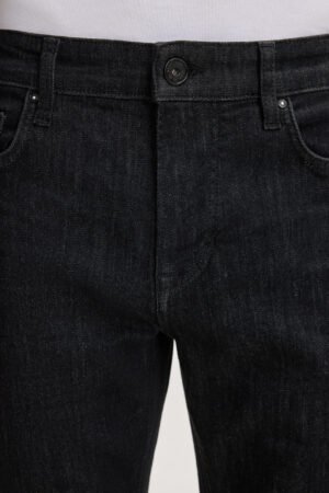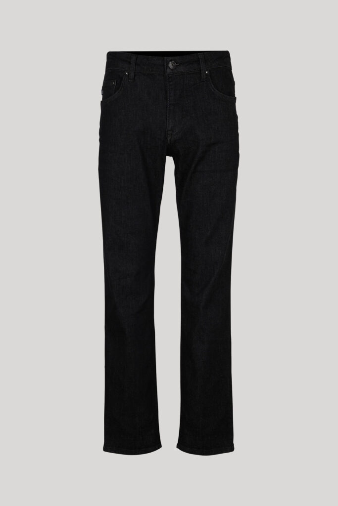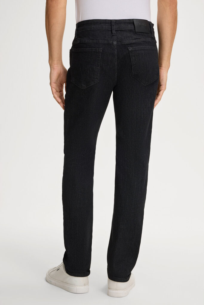 Vācu modes zīmola Joop! viegli elastīgi un ērti moderna piegriezuma vīriešu džinsi melnā krāsā. Izgatavoti no inovatīva kokvilnas maisījuma materiāla ar neliela nobružājuma un viegla burzījuma efektu. Papildināti ar melnām zīmola logotipa detaļām.