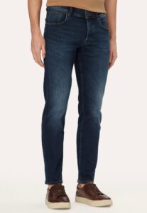 Ērti pieguļoši vīriešu džinsi tumši zilā krāsā