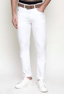 Klasiski vīriešu džinsi ar kontrastējošām nošuvēm