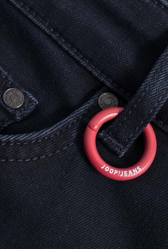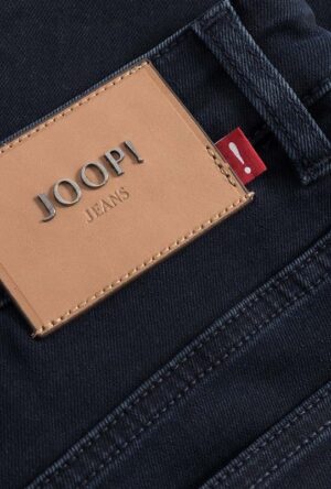 Vācu modes zīmola Joop! moderna piegriezuma vīriešu džinsi tumšā, nakts zilā krāsā. Izgatavoti no viegli elastīgas kokvilnas. Papildināti ar koši kontrastējošām zīmola Joop Jeans! logo detaļām.