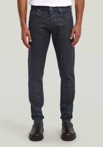 Nīderlandes zīmola G-Star Raw elastīgas kokvilnas džinsu bikses vīriešiem pelēcīgi zilā krāsā ar nobružājuma efektu un dekoratīviem plēsumiem.
