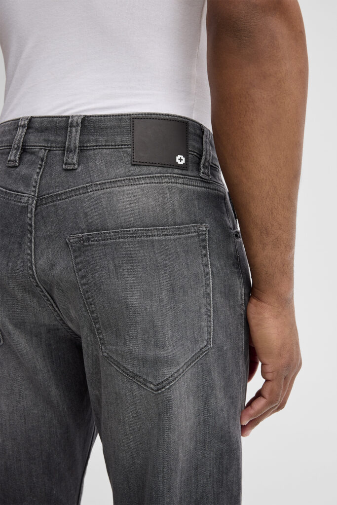 Šveices modes zīmola Strellson tumši pelēki taisna piegriezuma vīriešu džinsi ar nobružājuma efektu. Izgatavoti no viegli elastīga kokvilnas un modāla maisījuma materiāla. Akcentēti ar zīmola logotipa detaļām.