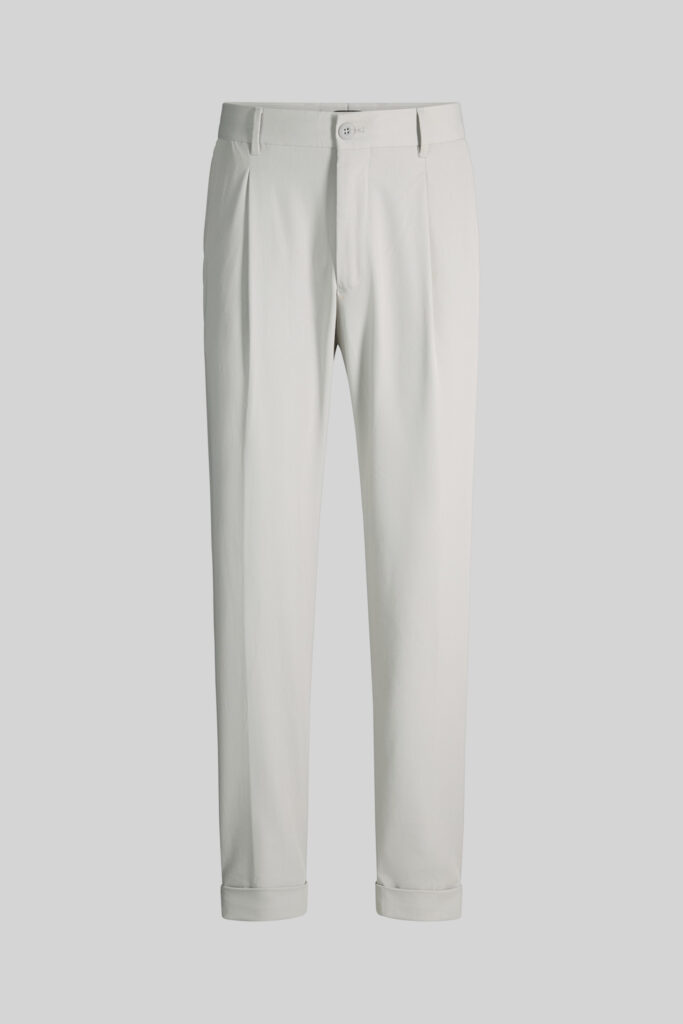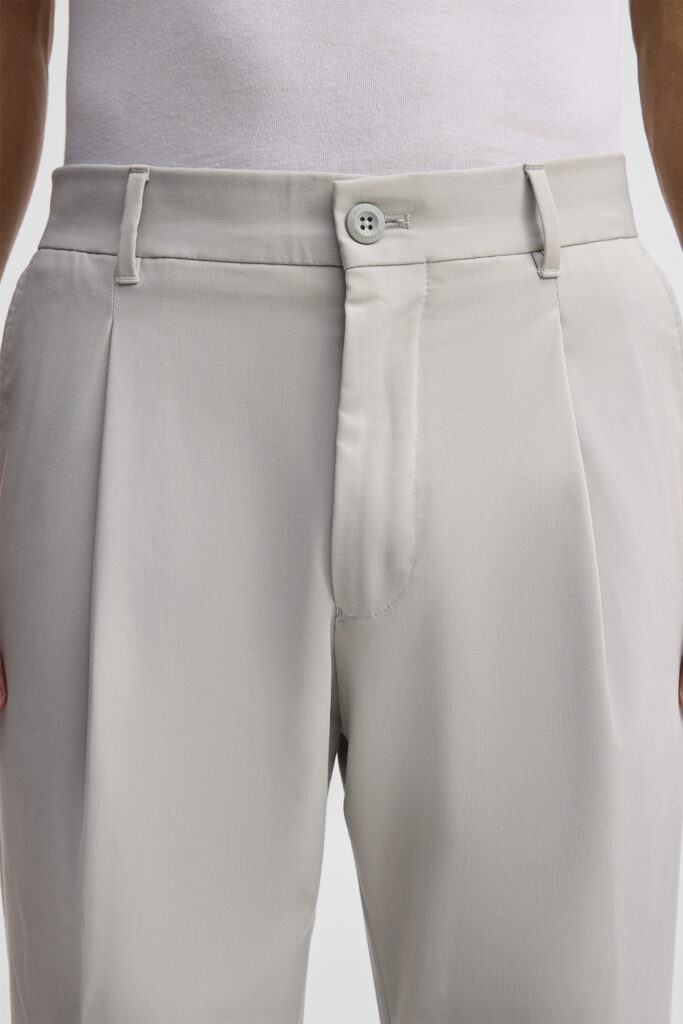 Gaiši pelēkas bikses ar fiksētiem atlokiem