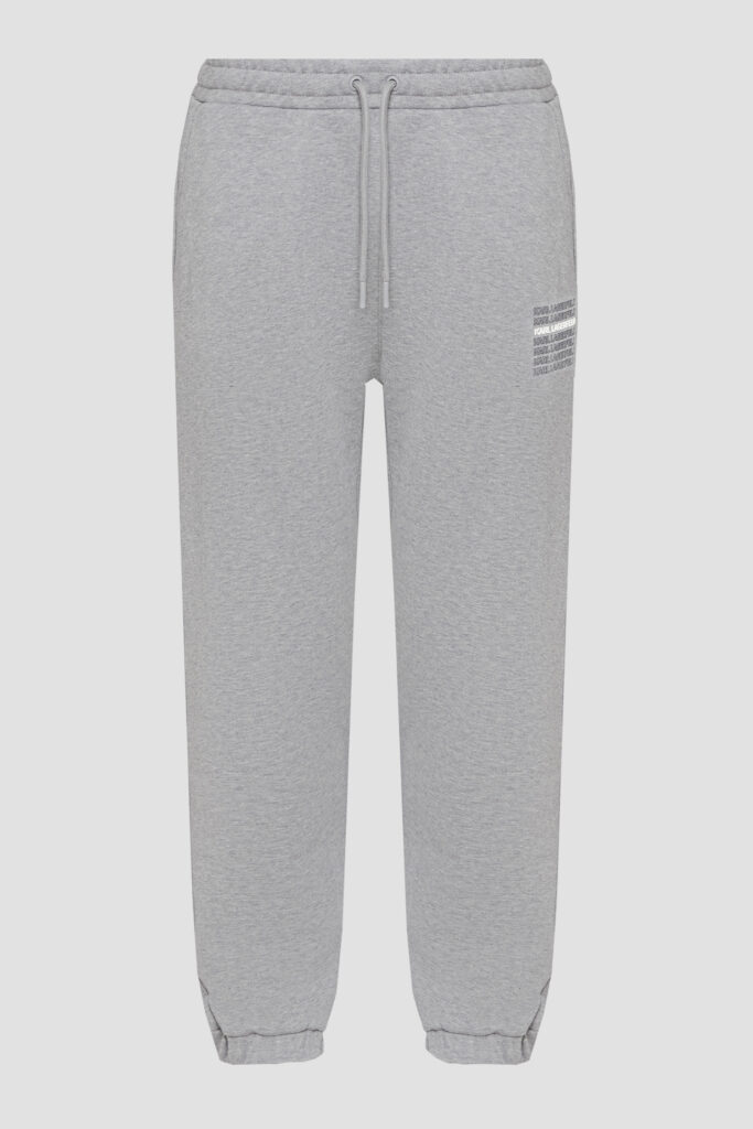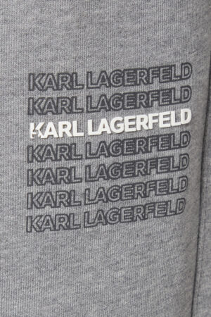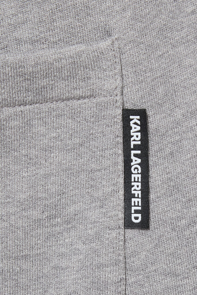 Vācu luksusa zīmola Karl Lagerfeld gaiši pelēkas vīriešu sportiskā stila bikses ar elastīgu sasienamo jostu. Izgatavotas no 100% kokvilnas materiāla ar mīkstu iekšpusi. Akcentētas ar zīmola logotipa uzrakstiem.