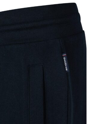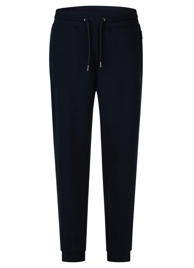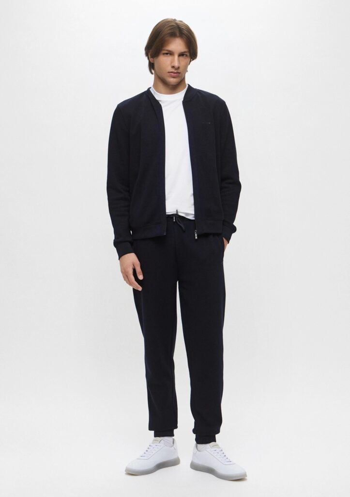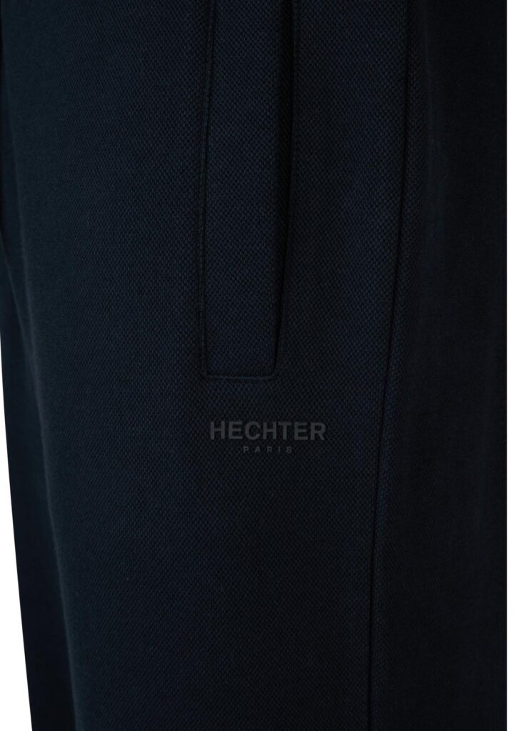 Franču zīmola HECHTER PARIS tumši zilas vīriešu sportiskā stila bikses ar elastīgu sasienamo jostasvietu. Izgatavotas no elastīga kokvilnas maisījuma materiāla ar smalki rievotu struktūru. Papildinātas ar kabatām un zīmola logotipa detaļām.