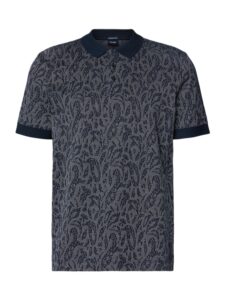 Vācu modes zīmola Joop! tumši zils vīriešu džemperis ar grafisku stilizēta logo dizaina adījuma rakstu. Izgatavots no 100% augstākās kvalitātes kokvilnas. Papildināts ar smalki rievotu apdari un zīmola logotipa plāksnīti apakšmalā.
