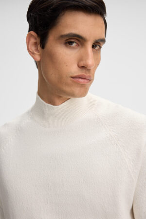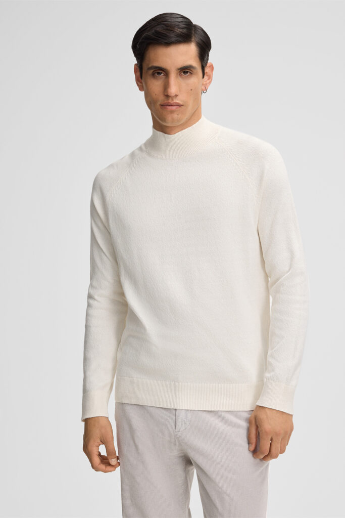 Šveices modes zīmola Strellson krēmbalts vīriešu džemperis ar garām reglāna piedurknēm un paaugstinātu apkakli. Izgatavots no mīkstas kokvilnas maisījuma dzijas. Papildināts ar smalki rievotu apdari.