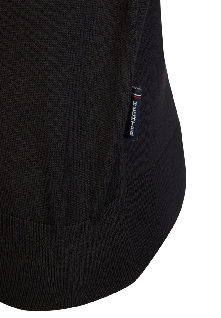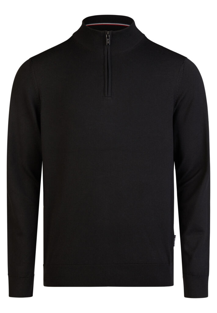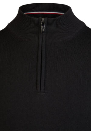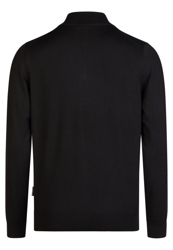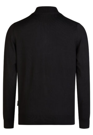 Franču zīmola HECHTER PARIS melns smalka adījuma vīriešu džemperis ar paaugstinātu apkakli un rāvējslēdzēja aizdari. Izgatavots no plāna modāla un kokvilnas maisījuma materiāla. Papildināts ar smalki rievotu apdari un zīmola logotipa detaļām.