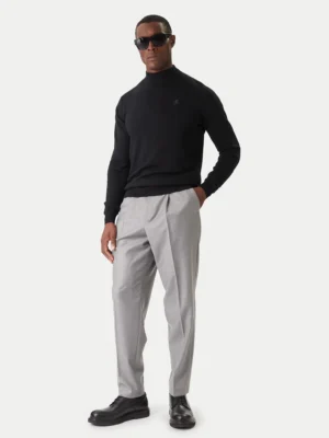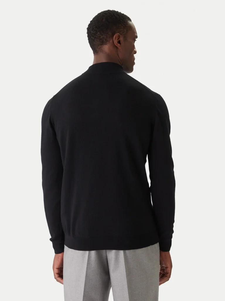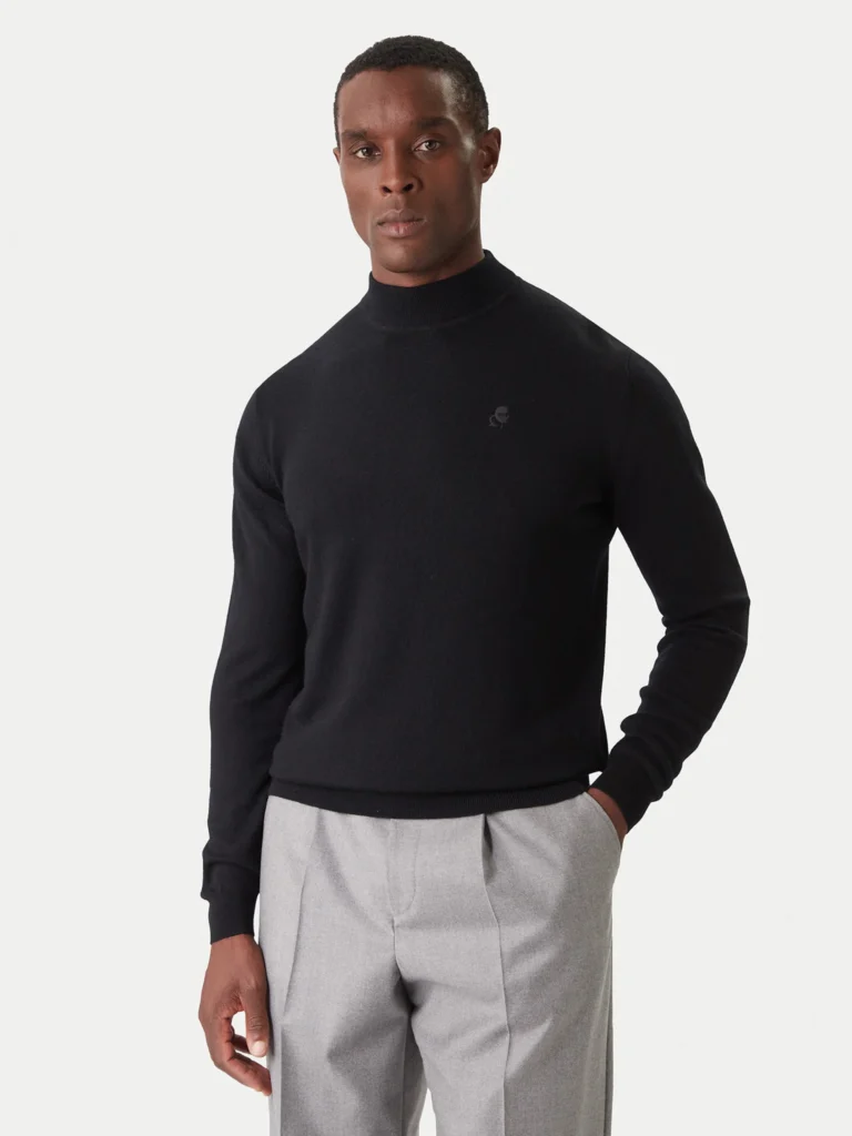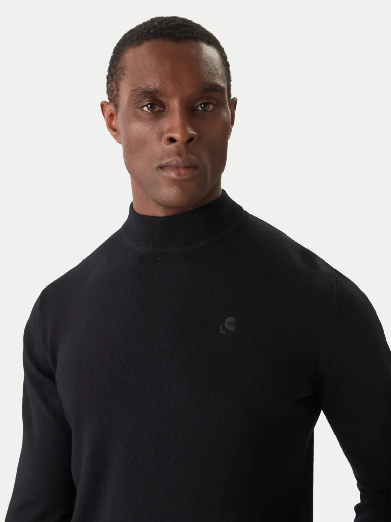 Melns vilnas ar džemperis ar paaugstinātu apkakli