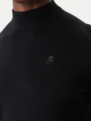Vācu luksusa zīmola Karl Lagerfeld smalka adījuma vīriešu džemperis ar nedaudz paaugstinātu apkakli melnā krāsā. Izgatavots no mīkstas vilnas dzijas. Papildināts ar smalki rievotu apdari un kamejas stila Karl logo izšuvumu.