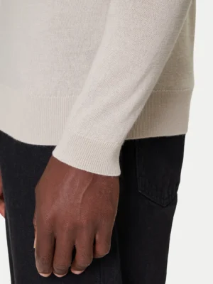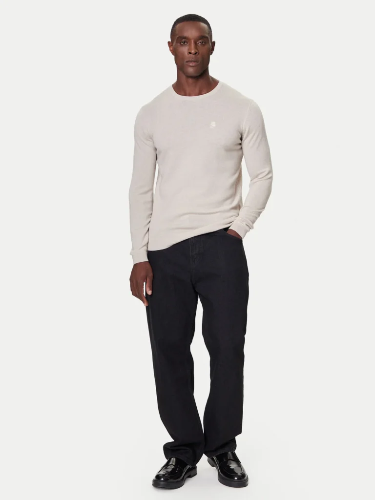 Vācu luksusa zīmola Karl Lagerfeld klasisks vīriešu džemperis pelēcīgi bēšā krāsā. Izgatavots no mīkstas un smalkas augstākās kvalitātes vilnas dzijas. Papildināts ar kamejas stila Karl logo izšuvumu.
