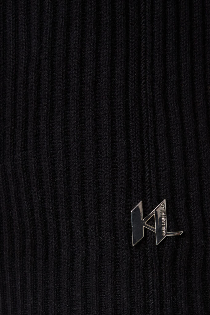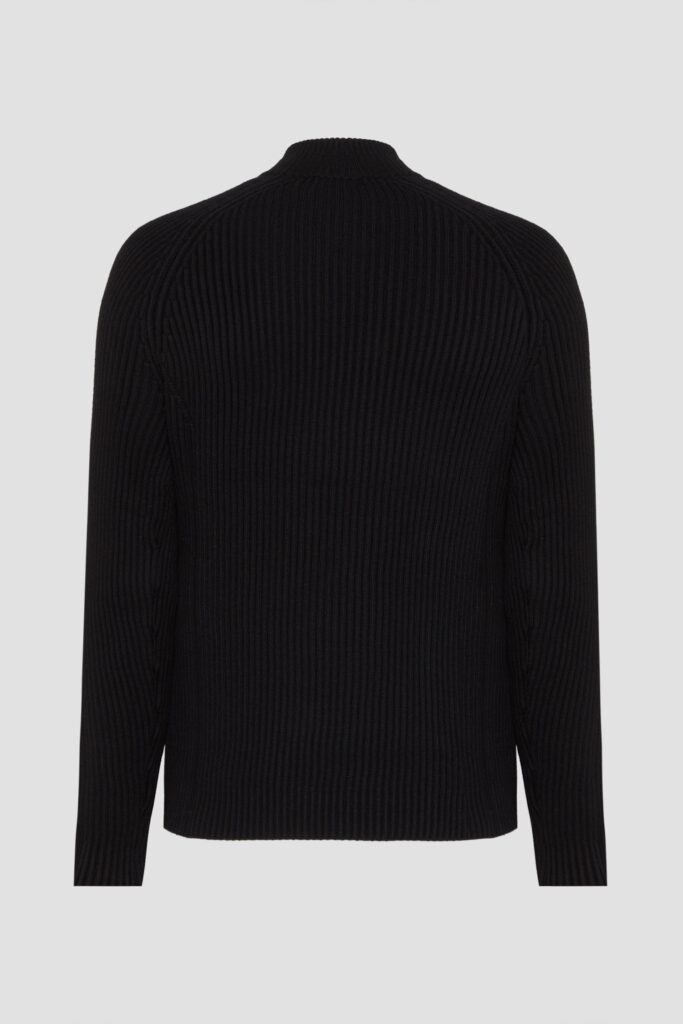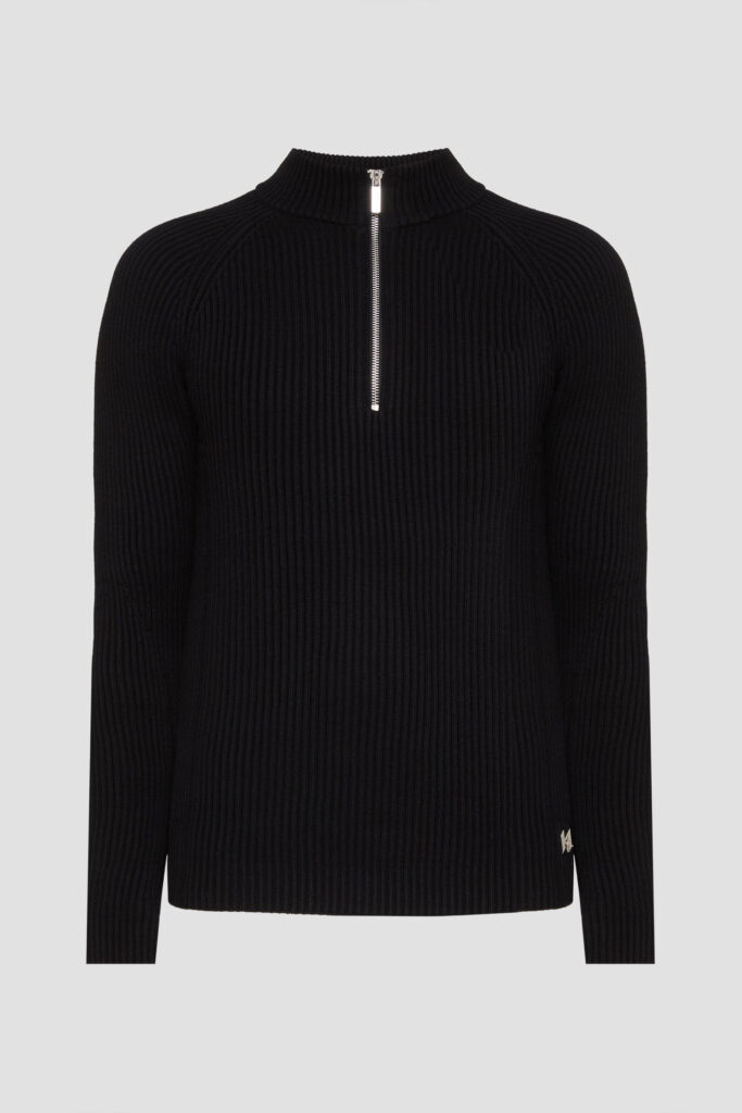 Vācu luksusa zīmola Karl Lagerfeld melns vīriešu džemperis ar paaugstinātu apkakli un rāvējslēdzērja aizdari. Izgatavots no vilnas un kokvilnas dzijas rievota adījuma rakstā. Papildināts ar garām reglāna piedurknēm un sudraba krāsas metāla monogrammas piespaudi.