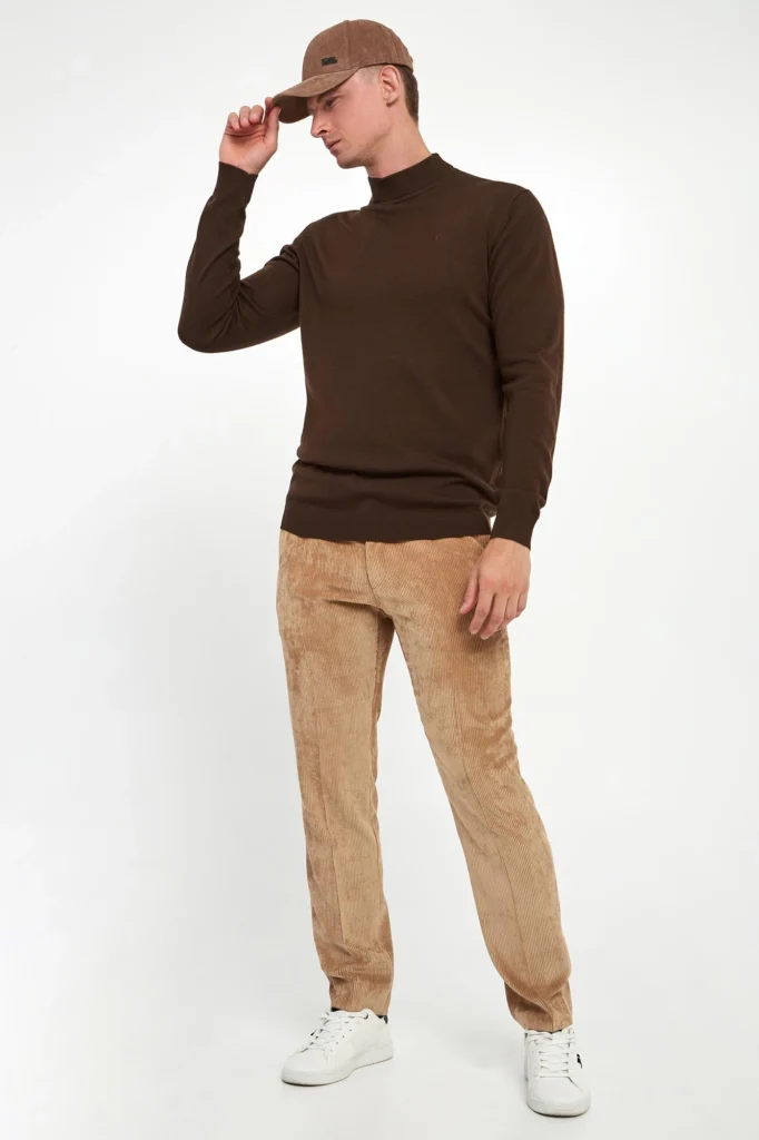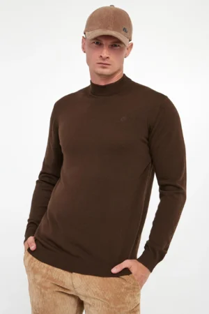 Tumši brūns vilnas džemperis ar paaugstinātu apkakli