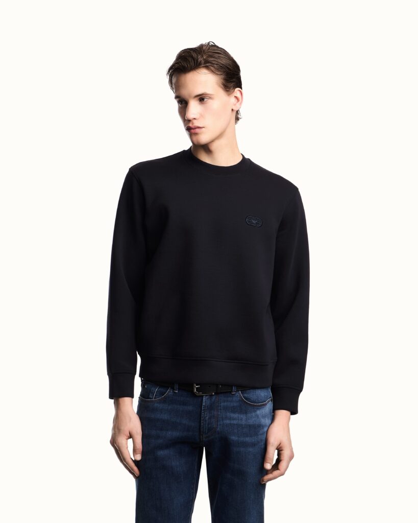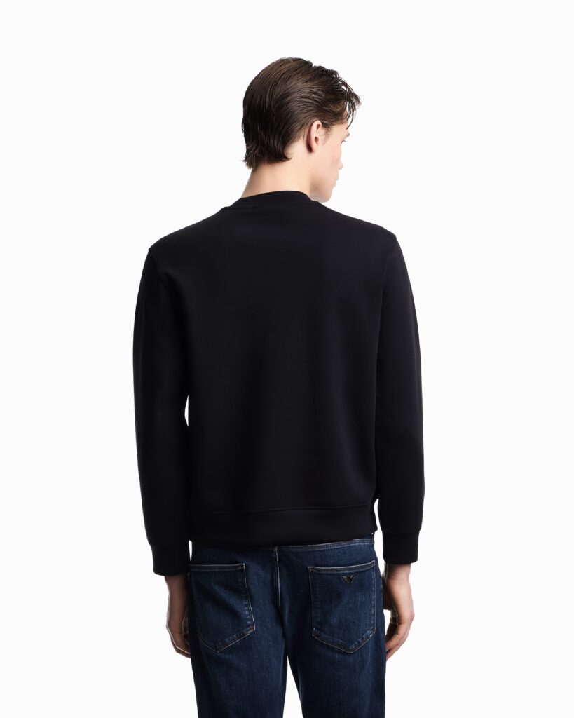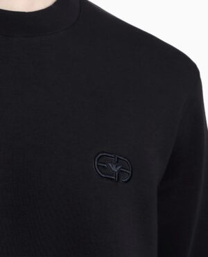 Itāļu luksusa zīmola Emporio Armani melns vīriešu sportiskā stila džemperis no Essentials kolekcijas. Izgatavots no blīva un elastīga kokvilnas maisījuma džersija auduma. Akcentēts ar logo dizaina vientoņa izšuvumu.
