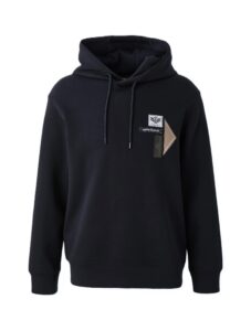 Itāļu luksusa zīmola Emporio Armani tumši zils vīriešu džemperis ar cilvēka silueta grafisko attēlu.