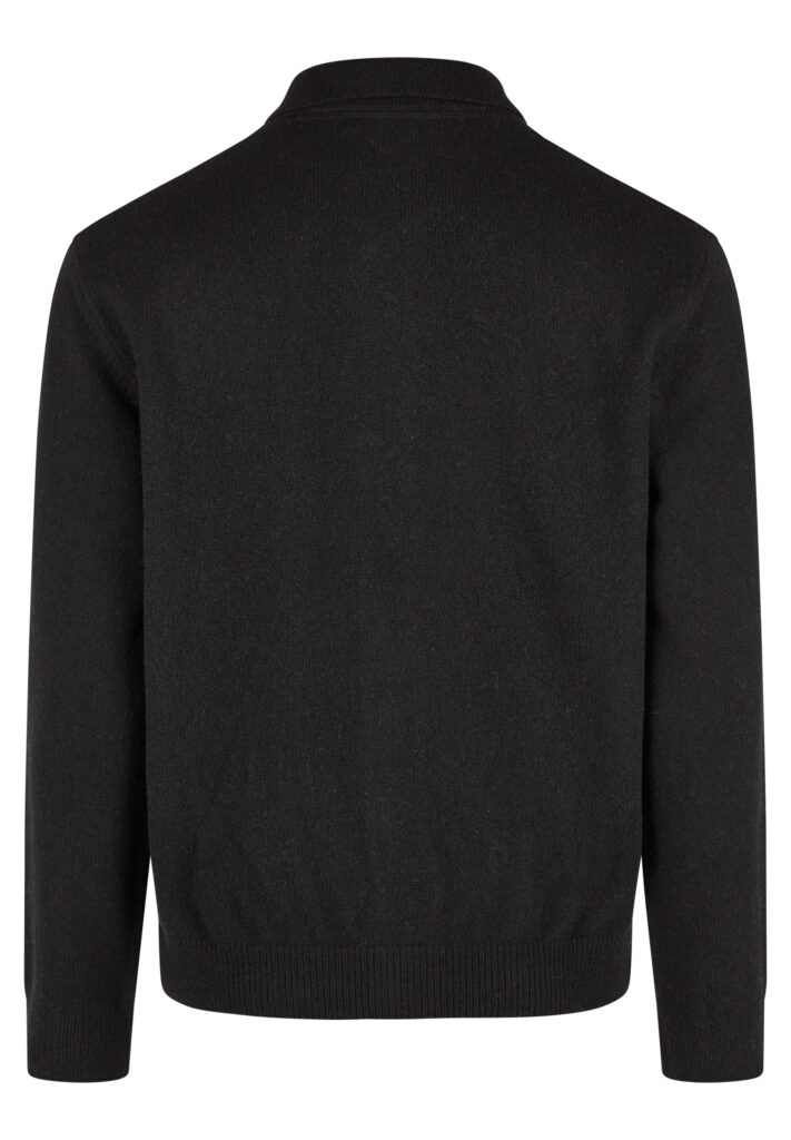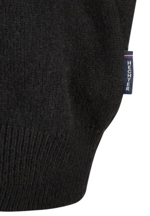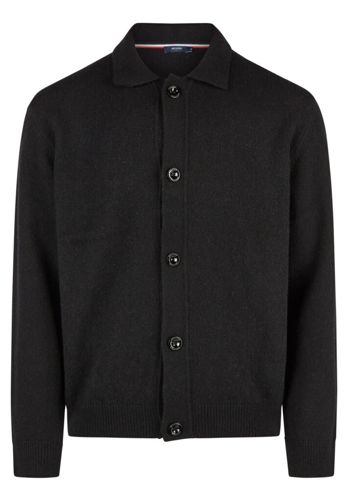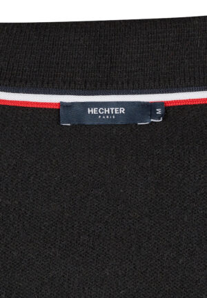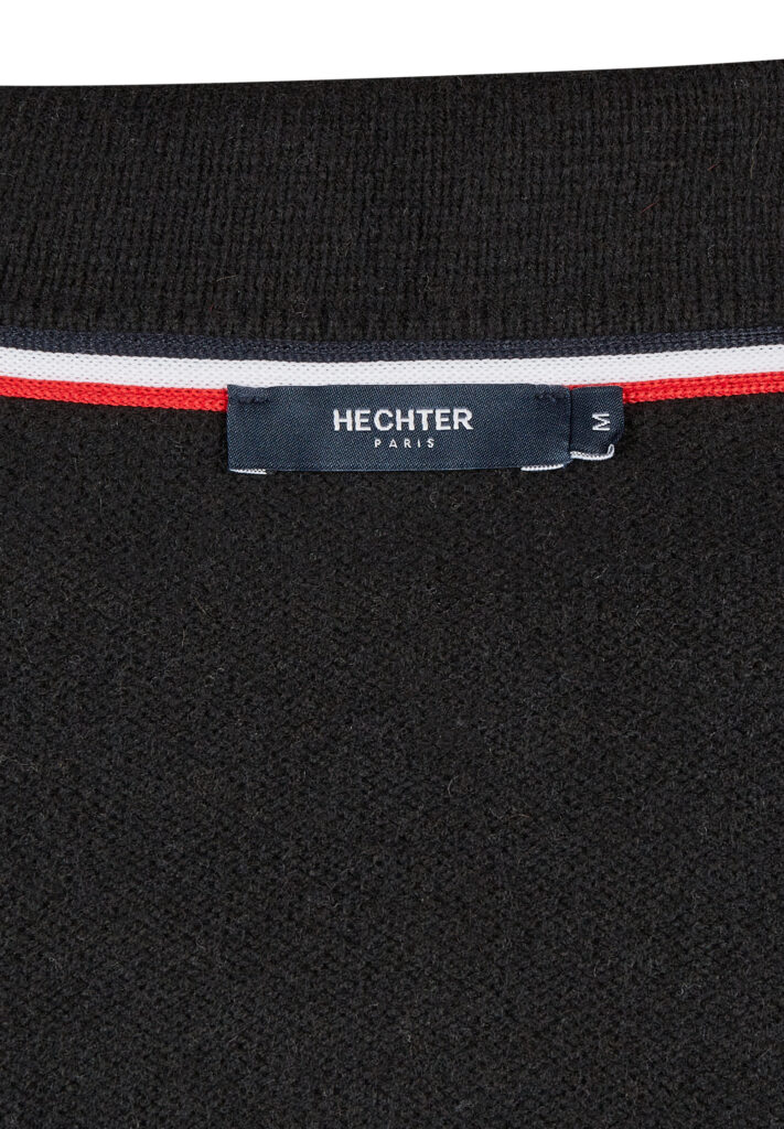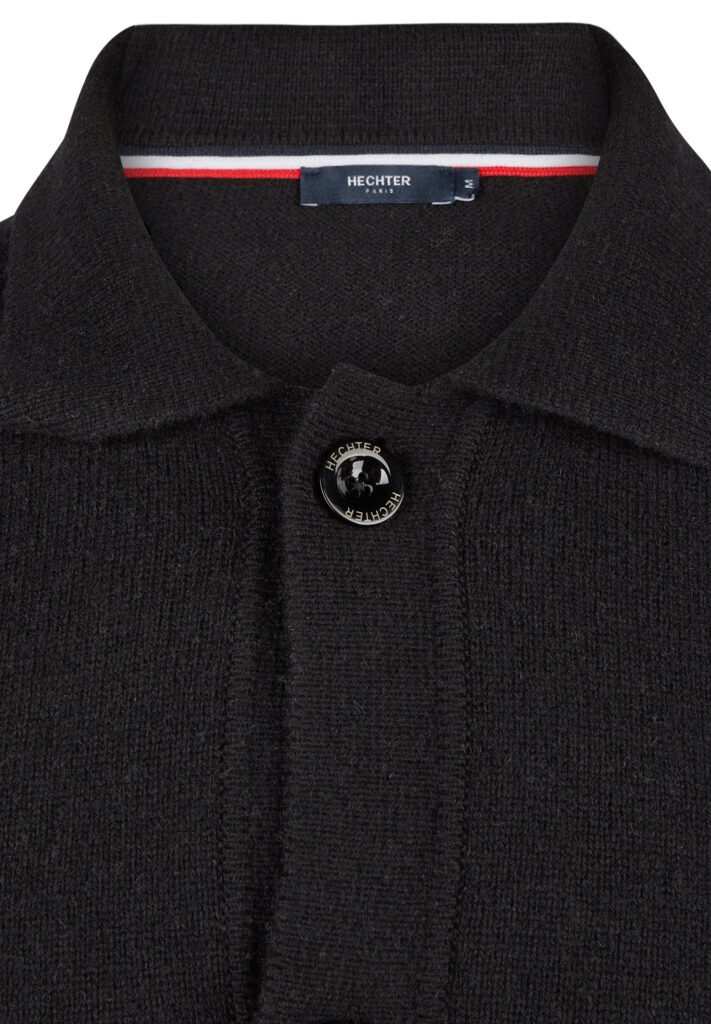 Franču zīmola HECHTER PARIS melna vīriešu jaka ar pogu aizdari. Izgatavota no vilnas un viskozes maisījuma dzijas. Papildināta ar kreklveida apkakli un zīmola logotipa detaļām.