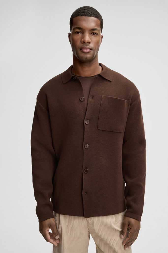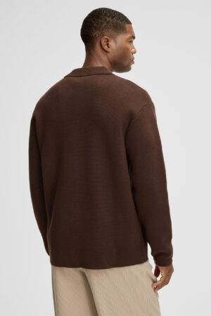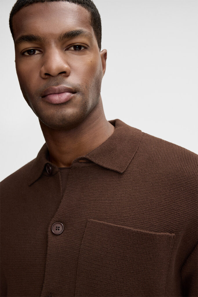 Šveices modes zīmola Strellson šokolādes brūns polo stila vīriešu krekls ar pilna garuma pogu aizdari. Izgatavots no mīkstas bio kokvilnas un vilnas dzijas. Papildināts ar uzšūtu krūšu kabatu.
