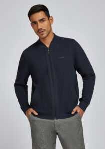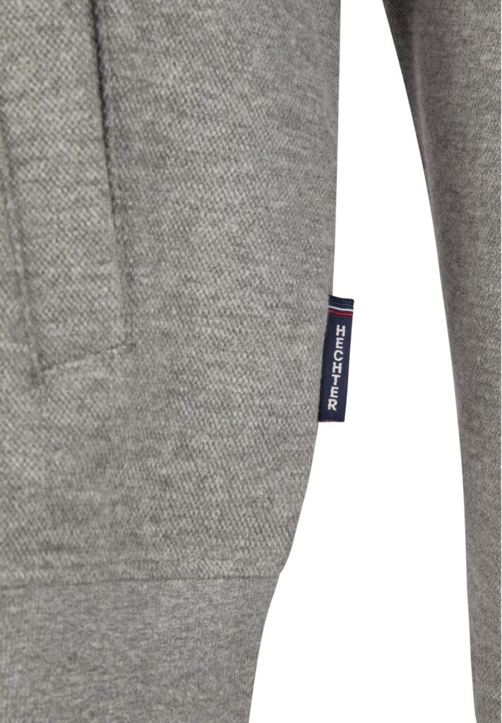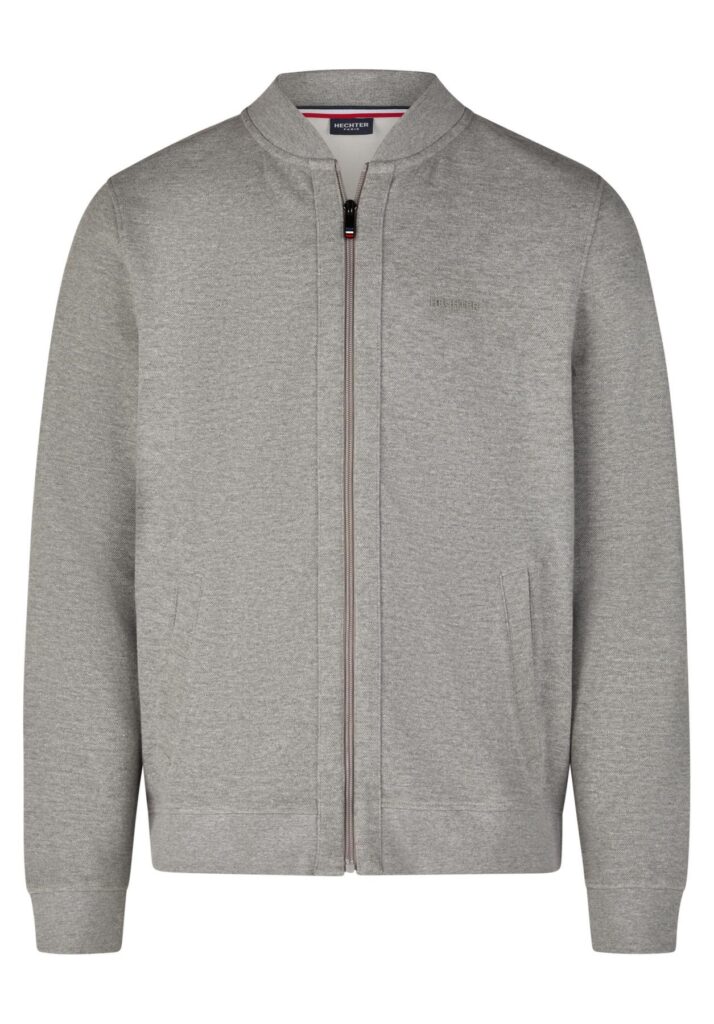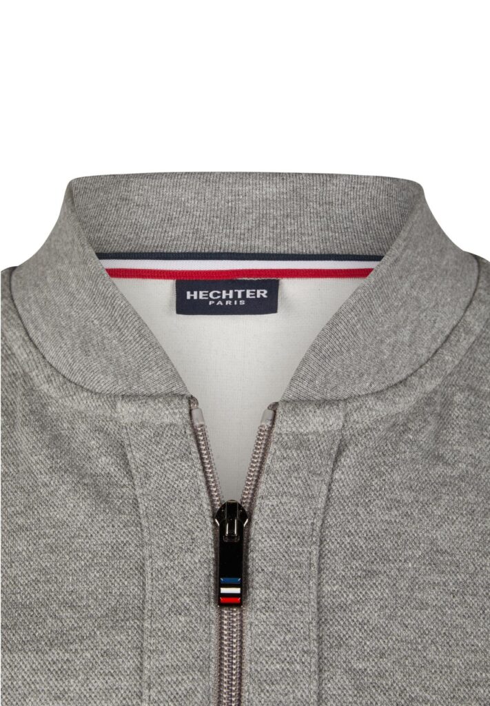 Franču zīmola HECHTER PARIS gaiši pelēka vīriešu sportiskā stila jaka ar rāvējslēdzēja aizdari. Izgatavota no elastīga kokvilnas un viskozes maisījuma materiāla ar smalki rievotu struktūru. Papildināta ar nedaudz paaugstinātu apkakli un iešūtām sānu kabatām, Akcentēta ar zīmola logotipa detaļām.