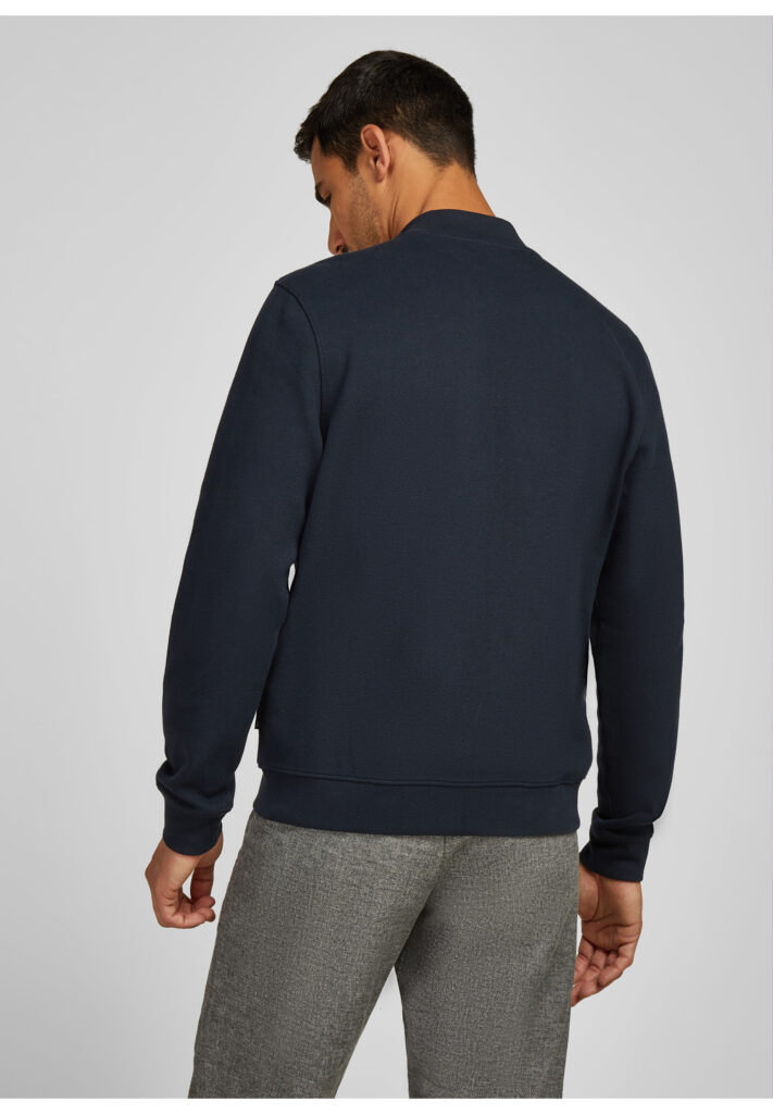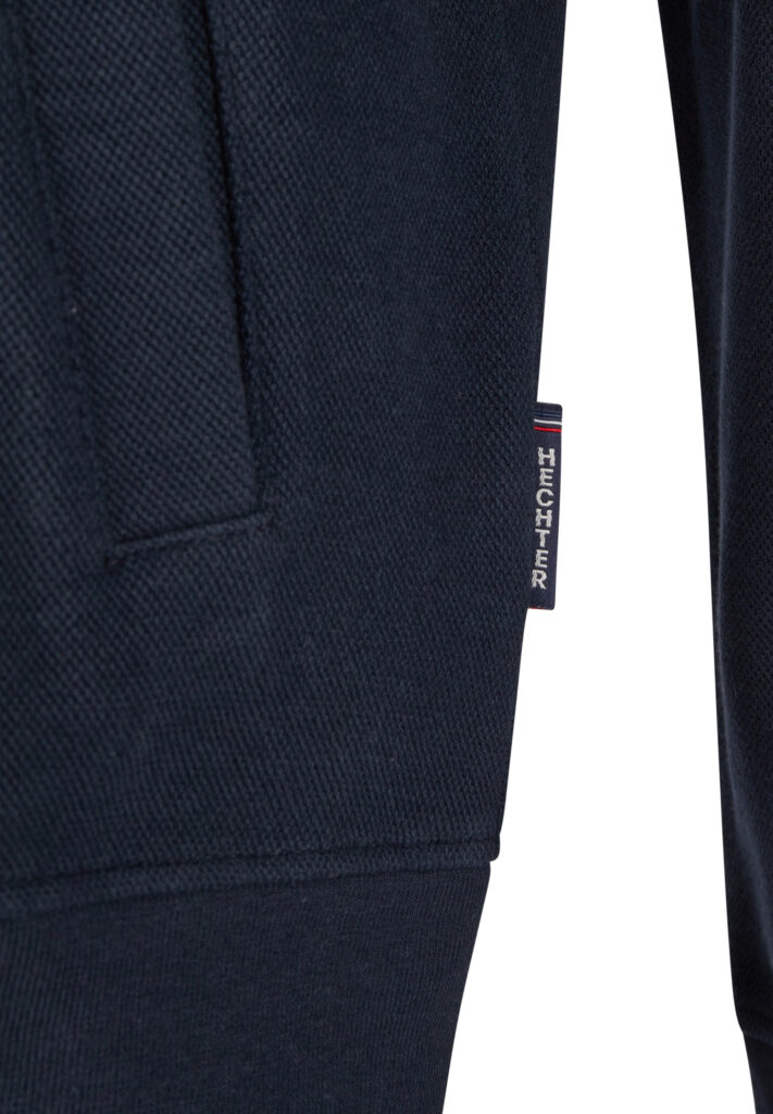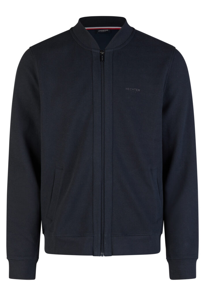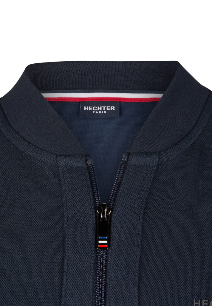 Franču zīmola HECHTER PARIS tumši zila vīriešu sportiskā stila jaka ar rāvējslēdzēja aizdari. Izgatavota no elastīga kokvilnas maisījuma materiāla ar smalki rievotu struktūru. Papildināta ar nedaudz paaugstinātu apkakli un iešūtām sānu kabatām, Akcentēta ar zīmola logotipa detaļām.