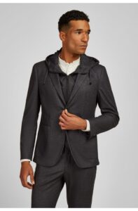 Vācu modes zīmola Joop! melna vīriešu sportiskā stila jaka ar viegli siltinātu dekoratīva stepējuma priekšpusi. Izgatavota no bieza un mīksta modāla un kokvilnas maisījuma materiāla. Papildināta ar smalki rievotu apdari, sānu kabatām un zīmola logotipa metāla plāksnīti mugurpusē.
