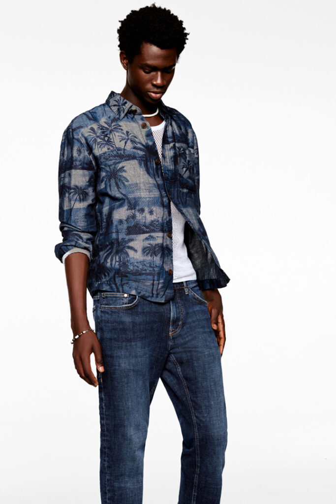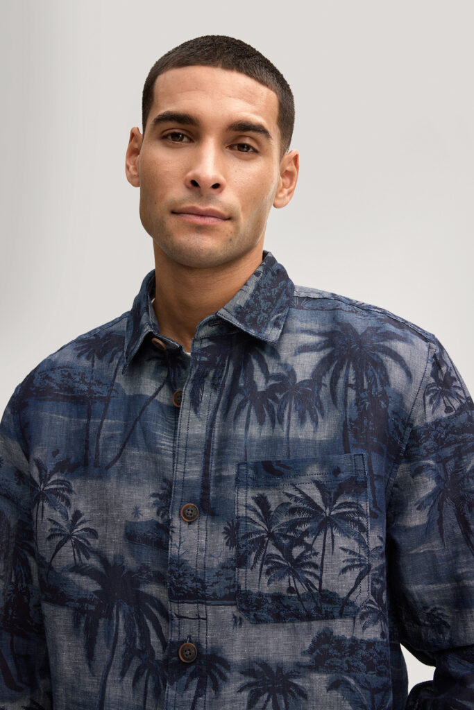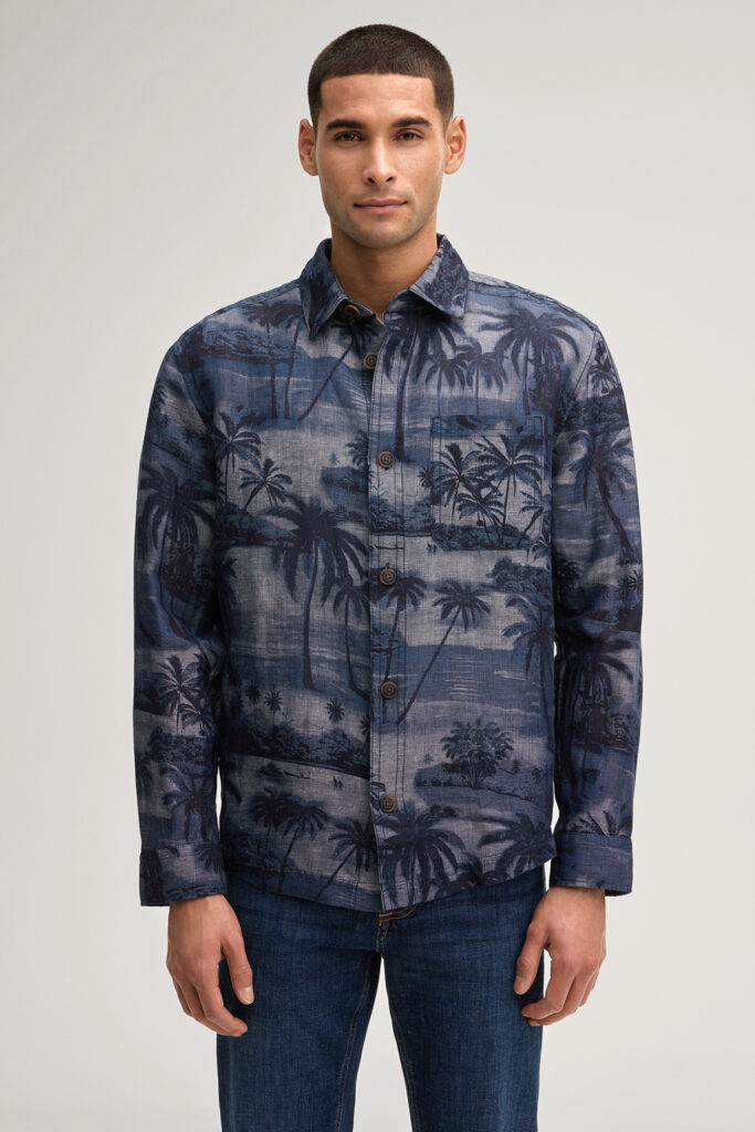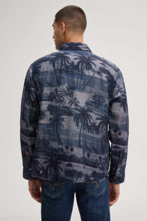 Vācu modes zīmola Joop! tumši zils vīriešu krekls ar grafisku palmu ainavu raksu. Izgatavots no viegla linu un kokvilnas materiāla. Papildināts ar uzšūtu krūšu kabatu un kontrastējošām zīmola logotipa detaļām.