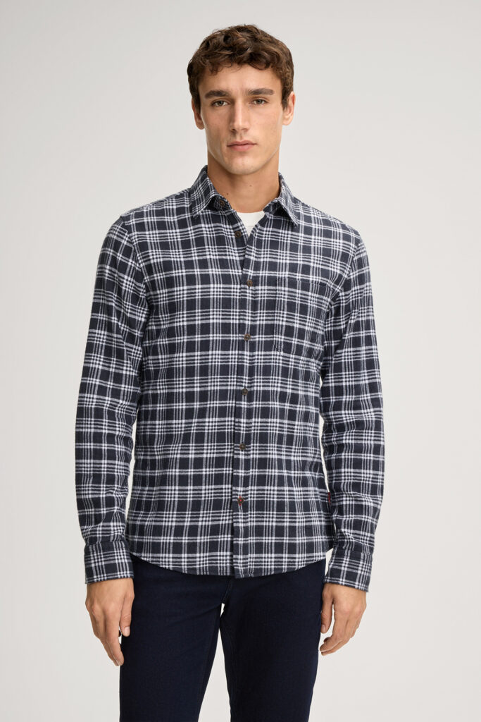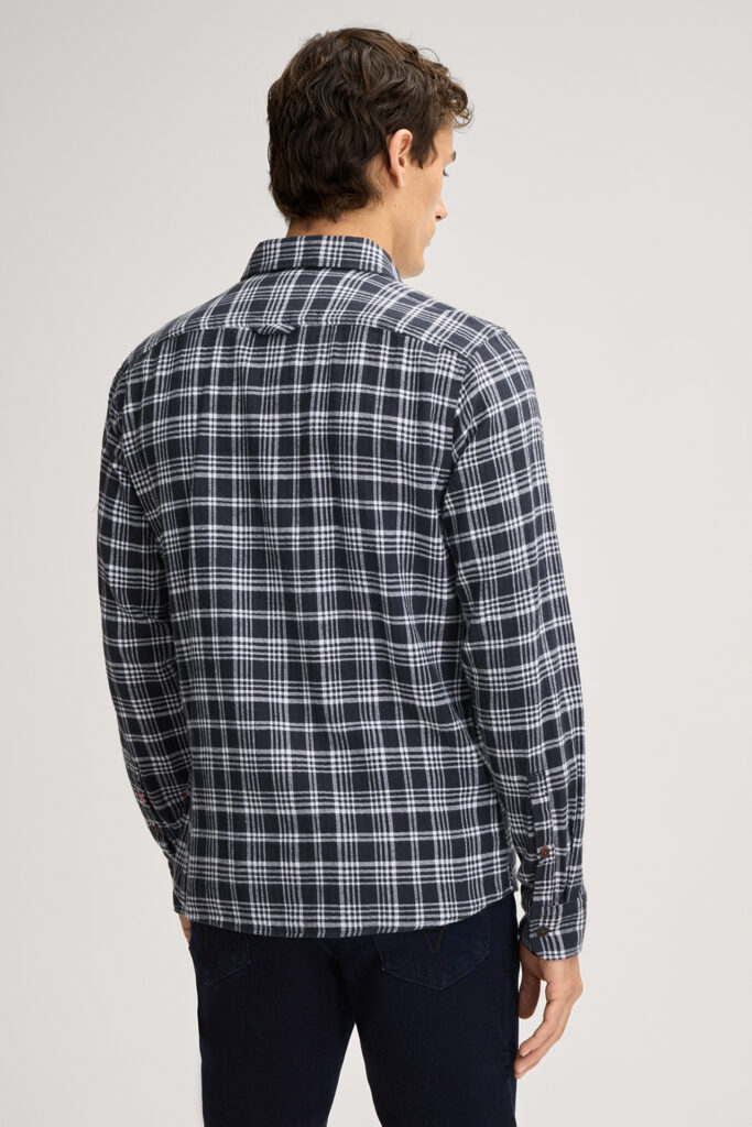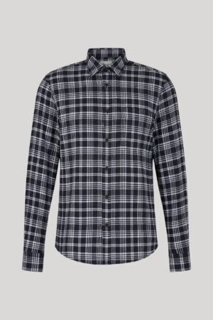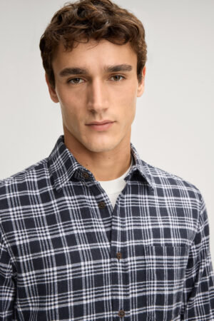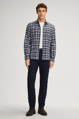 Vācu modes zīmola Joop! vīriešu krekls ar rūtainu rakstu tumši pelēkzilā krāsā. Izgatavots no mīksta kokvilnas flaneļa auduma. Papildināts ar uzšūtu krūšu kabatu, noapaļotu apakšmalu un koši kontrastējošiem zīmola logotipa akcentiem.
