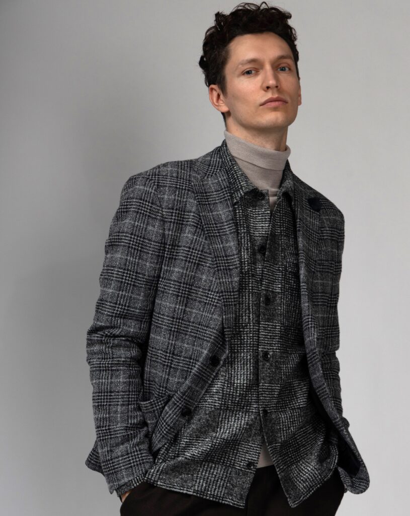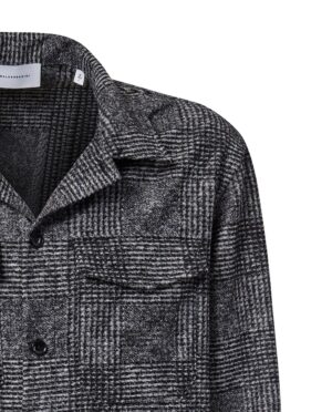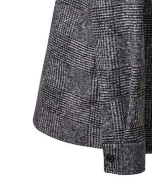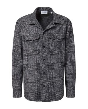 Austriešu premium klases modes zīmola Baldessarini vīriešu virskrekls ar rūtotu dizaina rakstu pelēki melnos toņos. Izgatavots no mīksta akrila un vilnas maisījuma materiāla ar viegli nelīdzenu tekstūru. Papildināts ar uzšūtām krūšu kabatām un zīmola pogu aizdari.