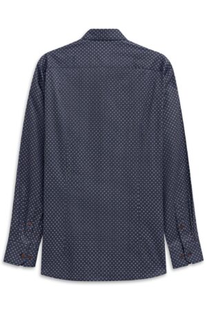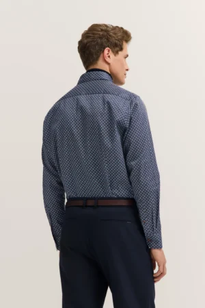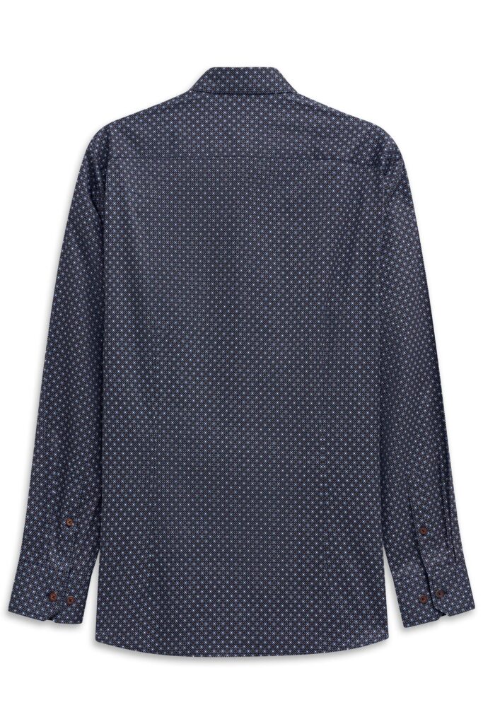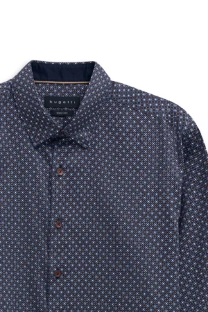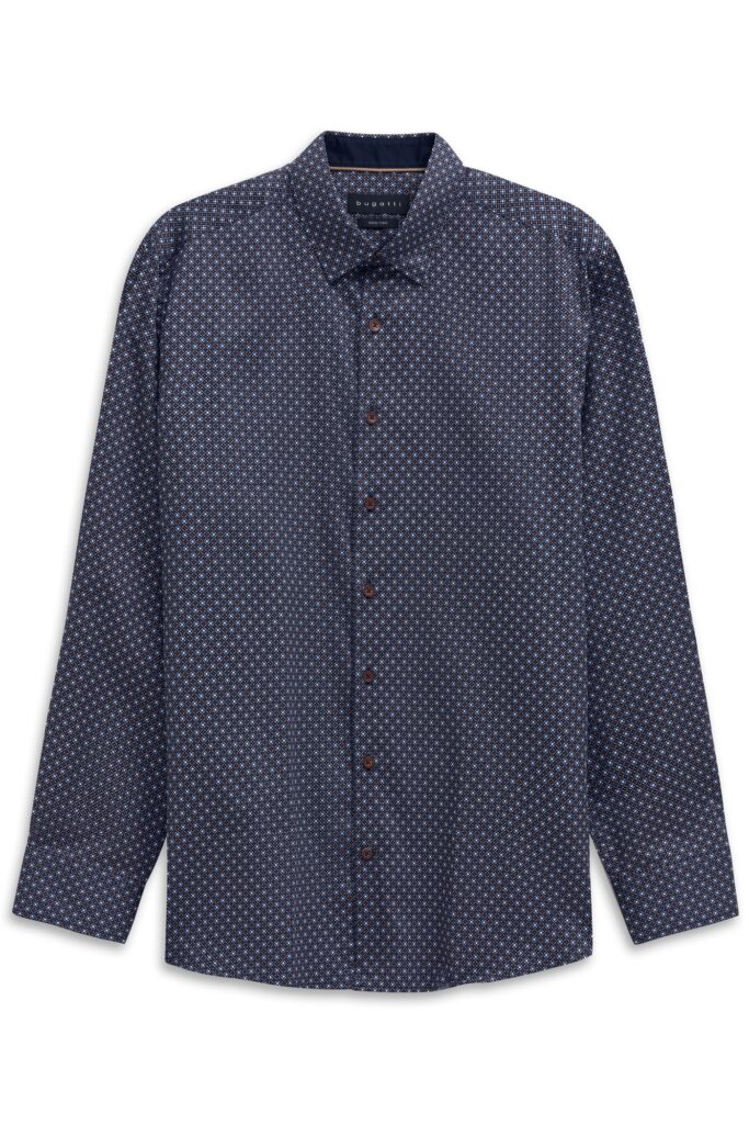 Vācu modes zīmola Bugatti vīriešu krekls ar smalku grafisko rakstu tumši zilā krāsā. Izgatavots no 100% augstākās kvalitātes kokvilnas. Papildināts ar viegli kontrastējošu pogu aizdari un dekoratīvu apdari.