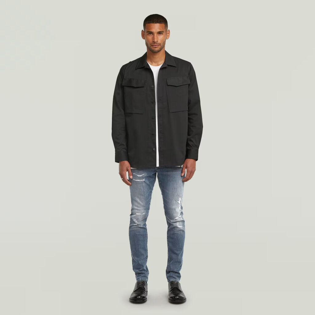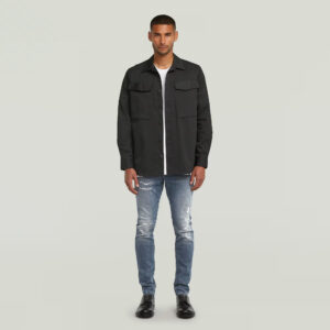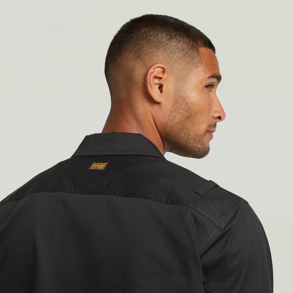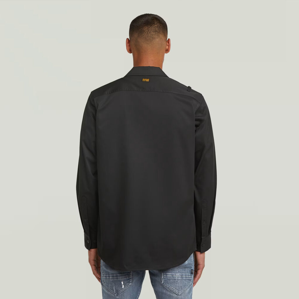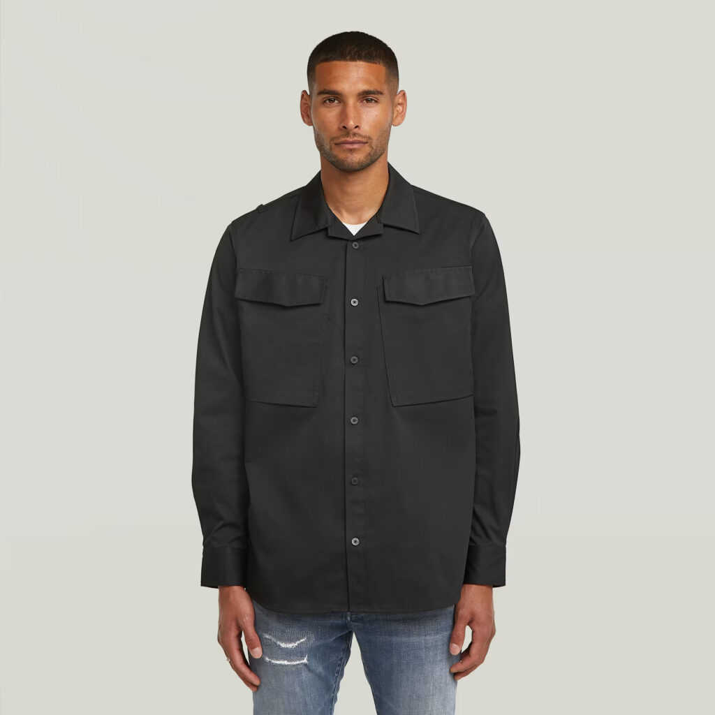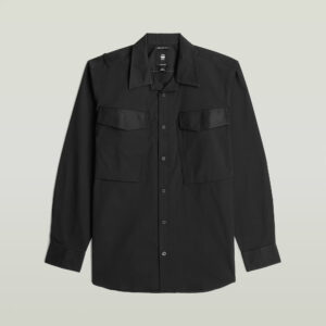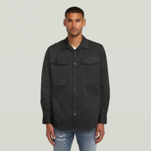 Nīderlandes zīmola G-Star Raw melns vīriešu virskrekls ar uzšūtām lielizmēra kabatām. Izgatavots no blīva pārstrādāta poliestera materiāla. Papildināts ar cilpu uz pleca, noapaļotu apakšmalu un zīmola emblēmas akcentu pie apkakles mugurpusē.