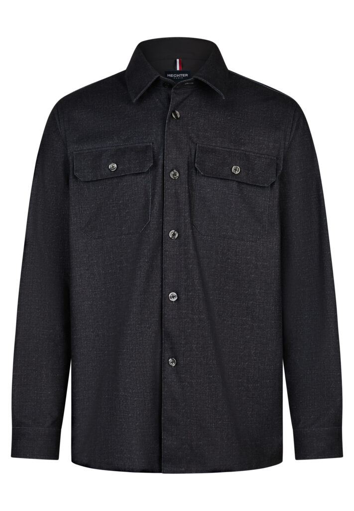 Franču zīmola HECHTER PARIS universāls vīriešu virskrekls no mīksta un elastīga materiāla ar viegli raibu rakstu tumši pelēkā krāsā. Papildināts ar pogājamām atloku kabatām.