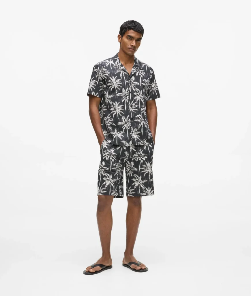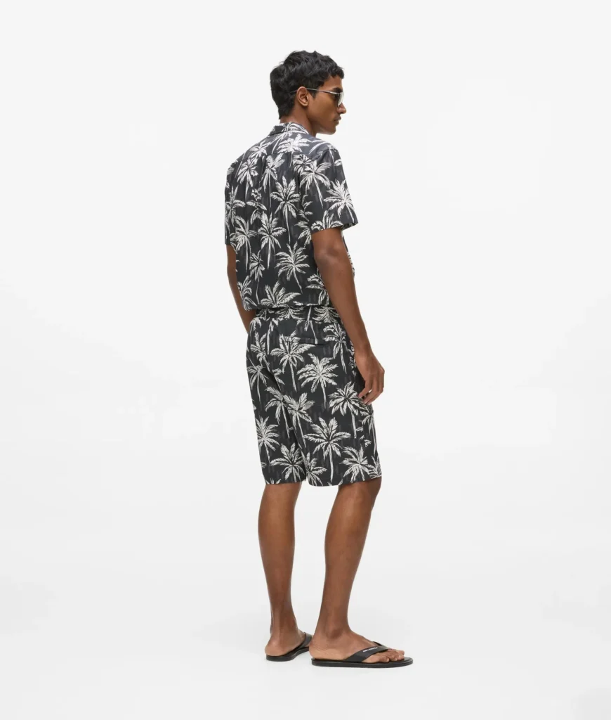 Kokvilnas šorti ar palmu un monogrammu rakstu