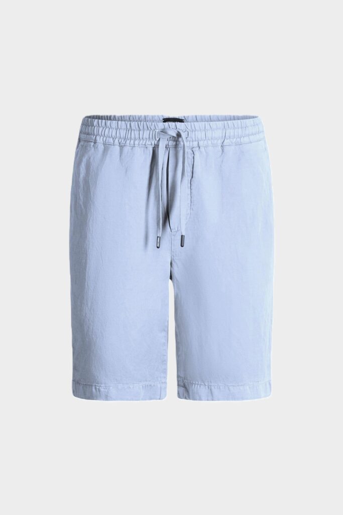 Šveices modes zīmola Strellson gaiši zili vīriešu Bermudu stila šorti ar elastīgu sasienamo jostasvietu. Izgatavoti no komfortabla liocela un linu materiāla. Papildināti ar kabatām un smalkām zīmola logotipa detaļām.